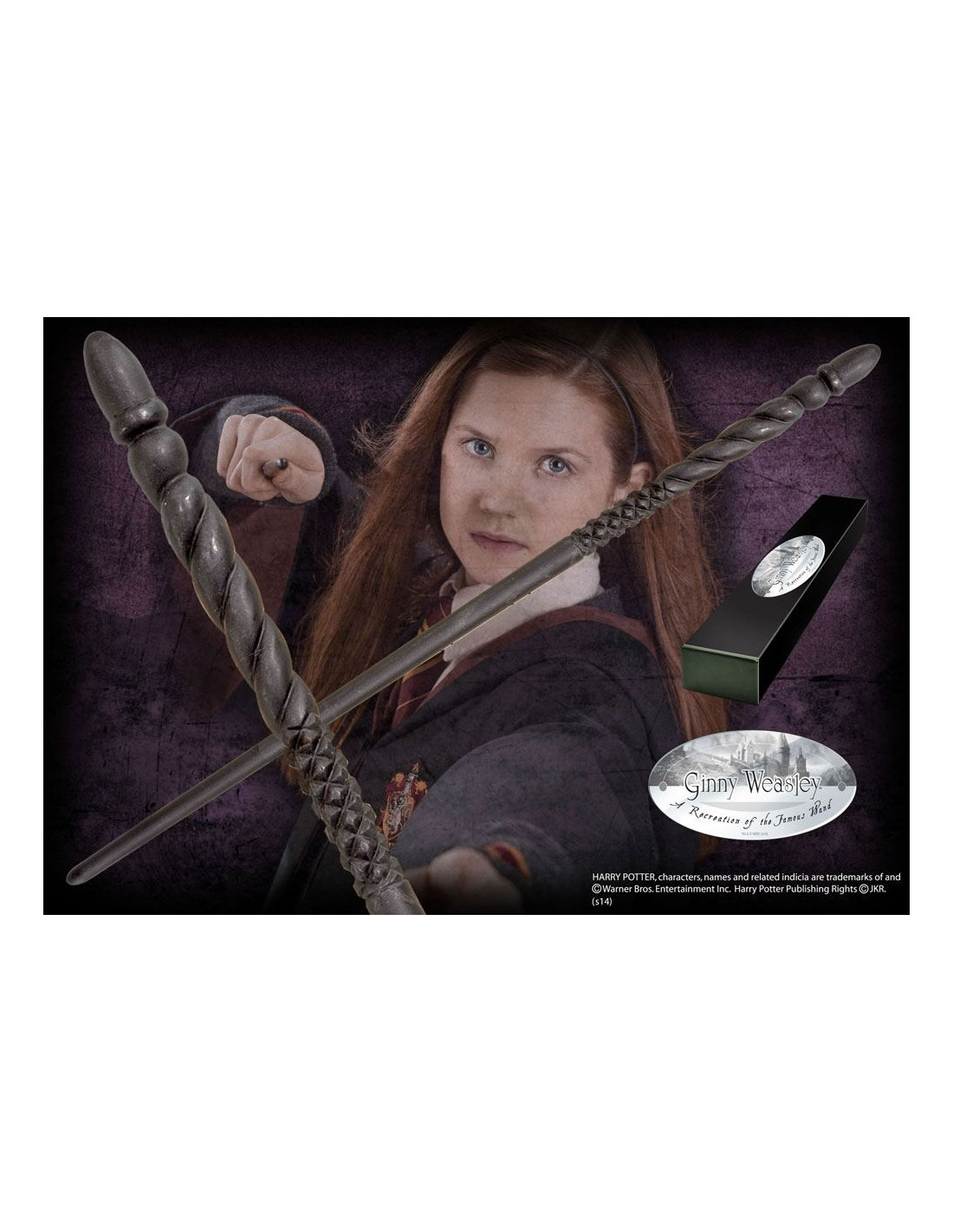 Réplique en résine peinte à la main de la baguette de Ginny Weasley, livrée en boîte de collection avec clip métal assorti.