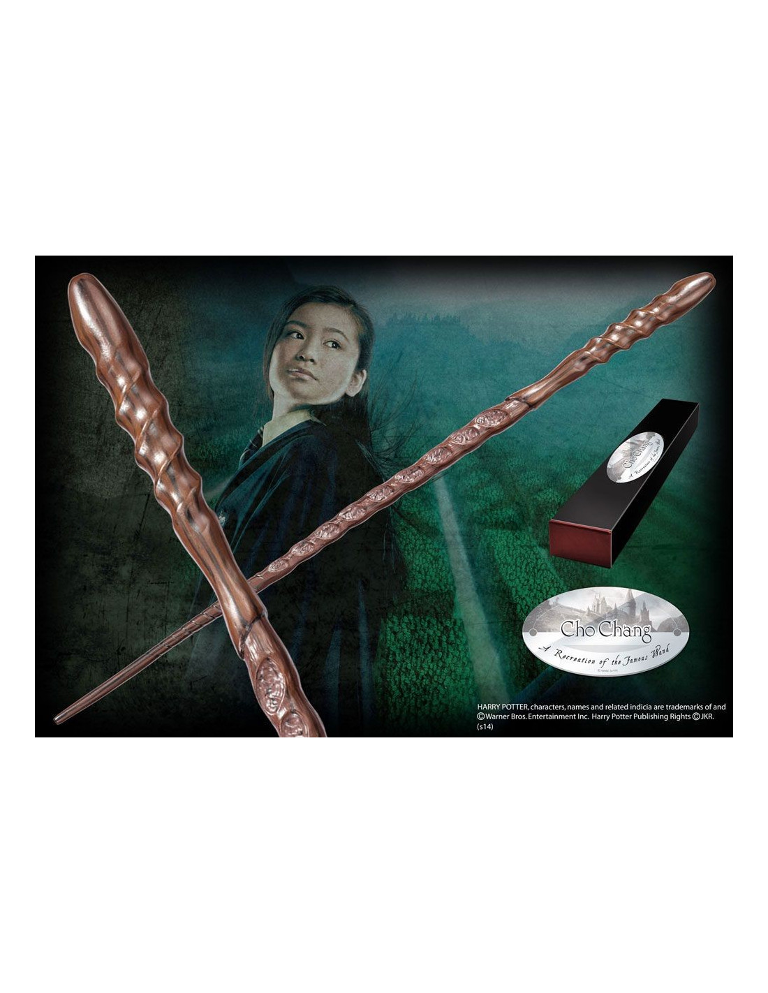Réplique en résine peinte à la main de la baguette de Cho Chang, livrée en boîte de collection avec clip métal assorti.