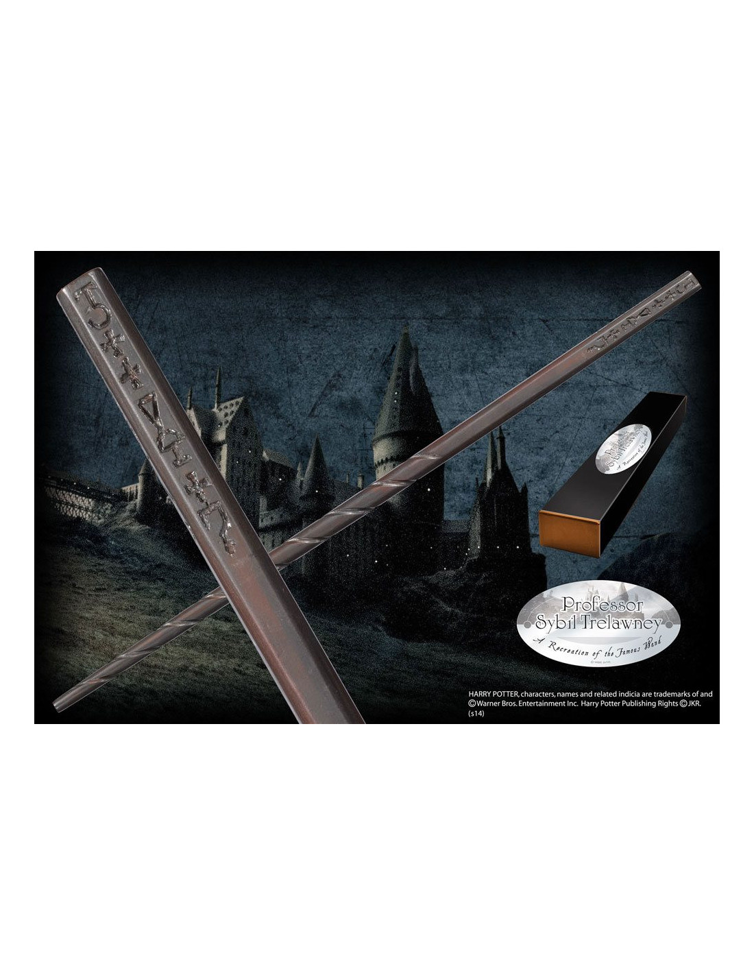 Réplique en résine peinte à la main de la baguette de Sybill Trelawney, livrée en boîte de collection avec clip métal assorti.