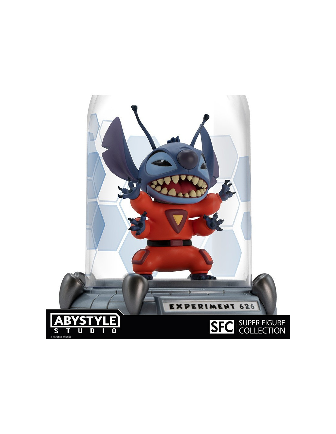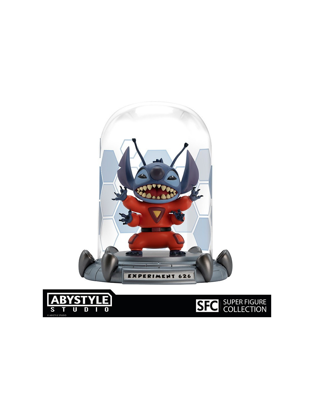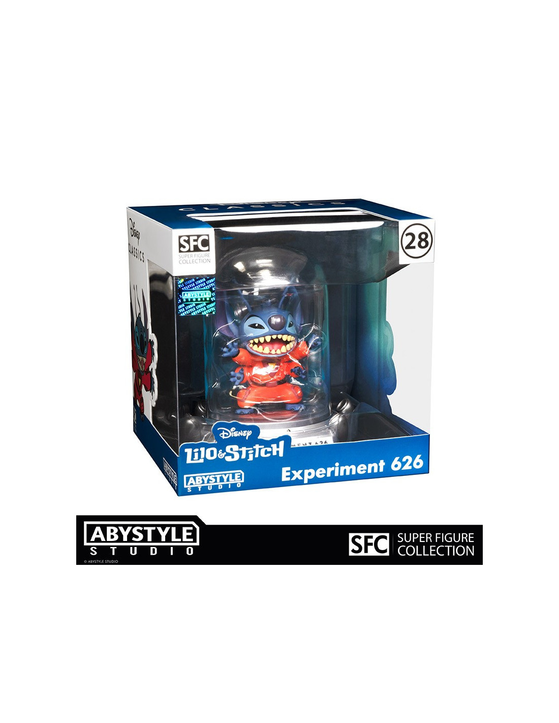 Conçu par Jumba pour être à l'épreuve des balles et du feu, extrêmement intelligent et incroyablement fort, Experience 626 n'avait qu'un seul but : la destruction ! Du siège de la Fédération Galactique à la planète Terre, Stitch fait un atterrissage en catastrophe au sein de la gamme SFC d'ABYstyle Studio. - Figurine en PVC de la gamme Super Figure Collection - Retrouvez Stitch dans sa cellule de confinement ! - Hauteur: 12 cm