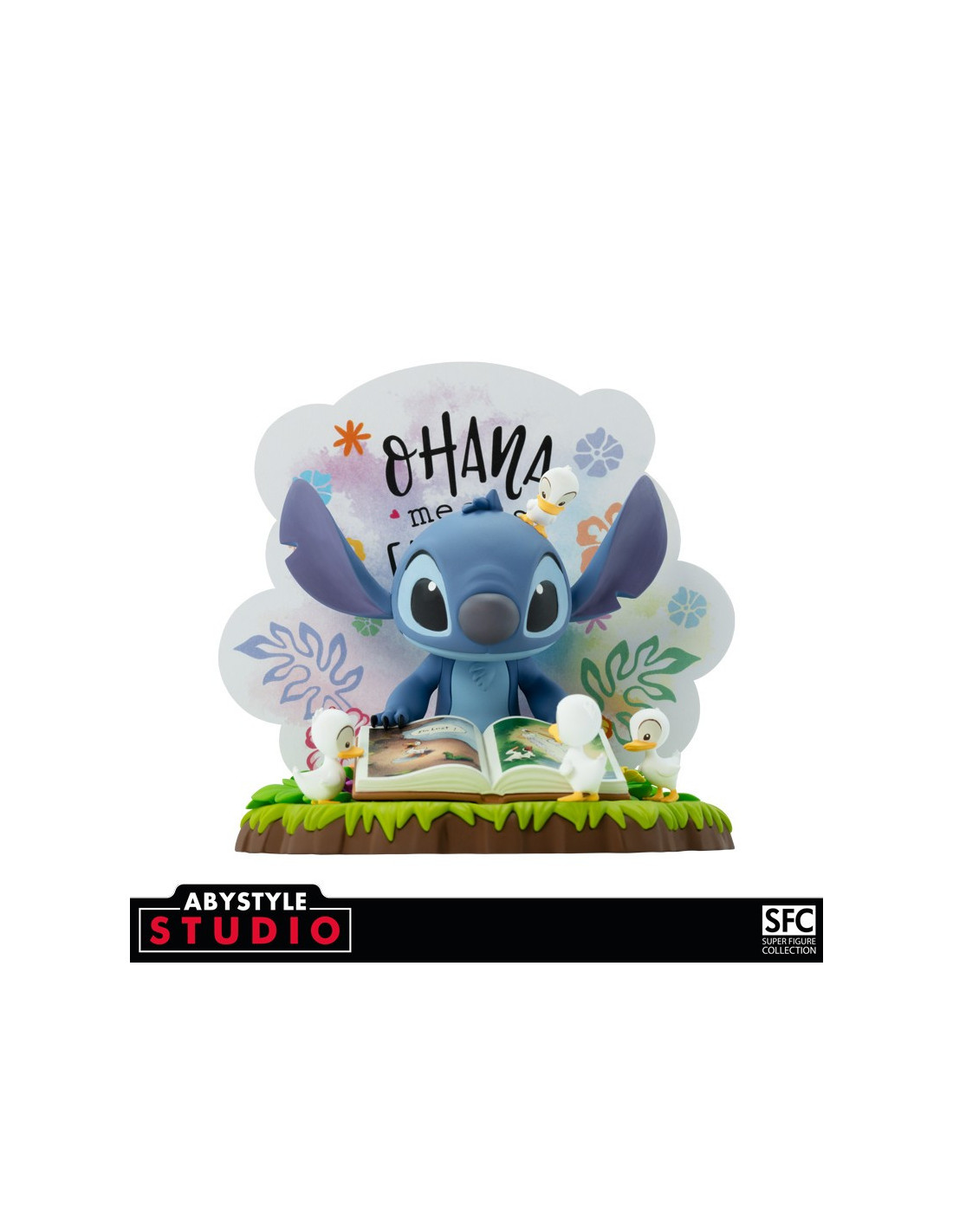 L'alien le plus populaire et attendrissant de la Galaxy, Stitch, vient d'être capturé par ABYstyle Studio. Entouré de canetons, il lit attentivement le livre de Lilo, Le Vilain Petit Canard. Stitch nous rappelle ici l'importance et la signification d'Ohana. « Ohana signifie famille. Famille signifie que personne ne doit être abandonné, ni oublié » - Figurine PVC de gamme Super Figure Collection (SFC) - Hauteur : 10 cm - Retrouvez Stitch accompagné de la maxime "Ohana means family"