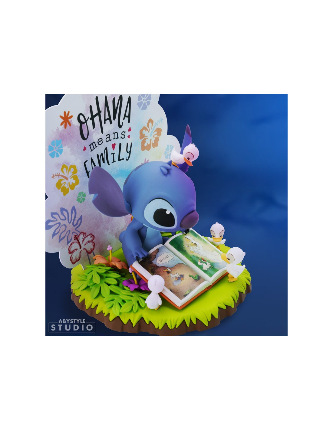 L'alien le plus populaire et attendrissant de la Galaxy, Stitch, vient d'être capturé par ABYstyle Studio. Entouré de canetons, il lit attentivement le livre de Lilo, Le Vilain Petit Canard. Stitch nous rappelle ici l'importance et la signification d'Ohana. « Ohana signifie famille. Famille signifie...