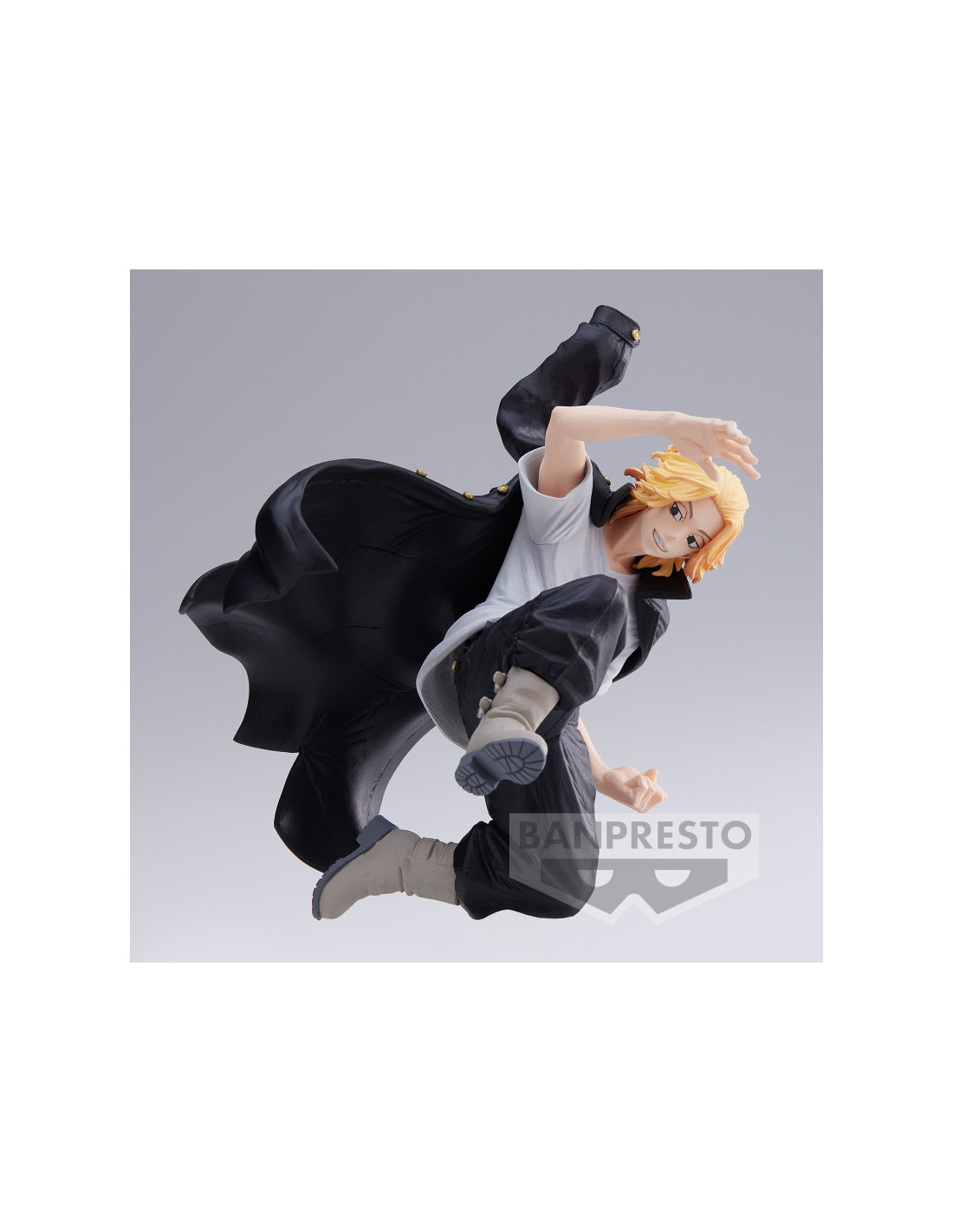 Figurine de Manjiro Sano (Mikey) tirée de la série Tokyo Revengers et dans la collection King Of Artist. Elle mesure 13 cm de hauteur. Produit officiel par Banpresto / Bandai Spirits