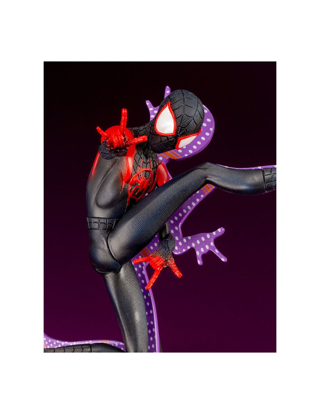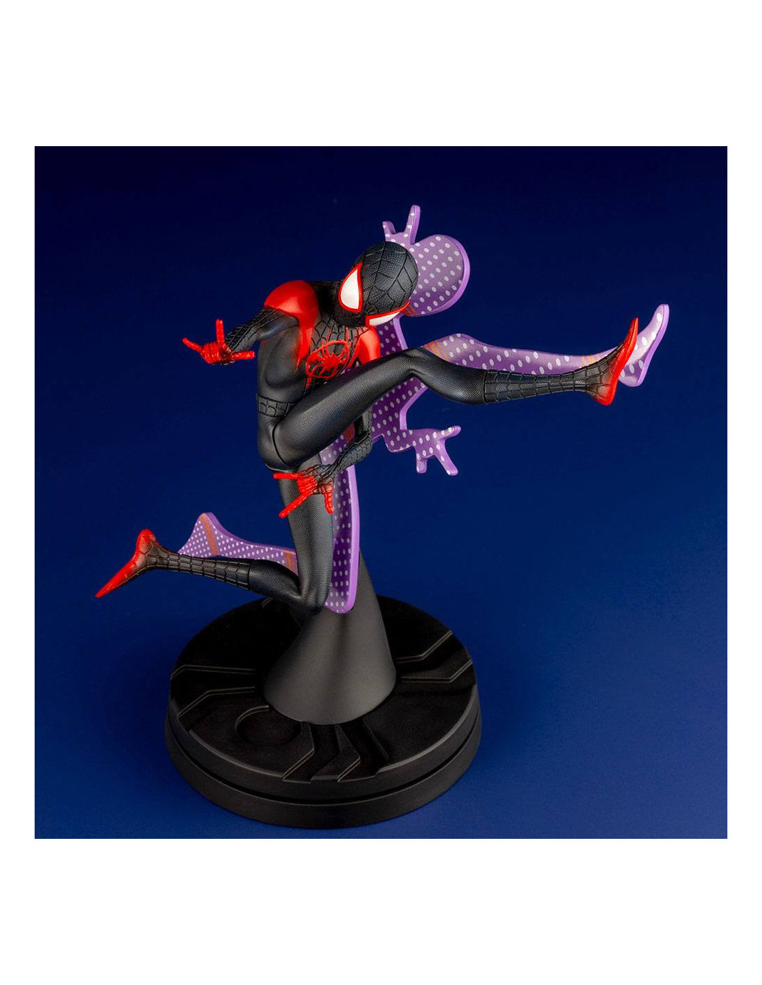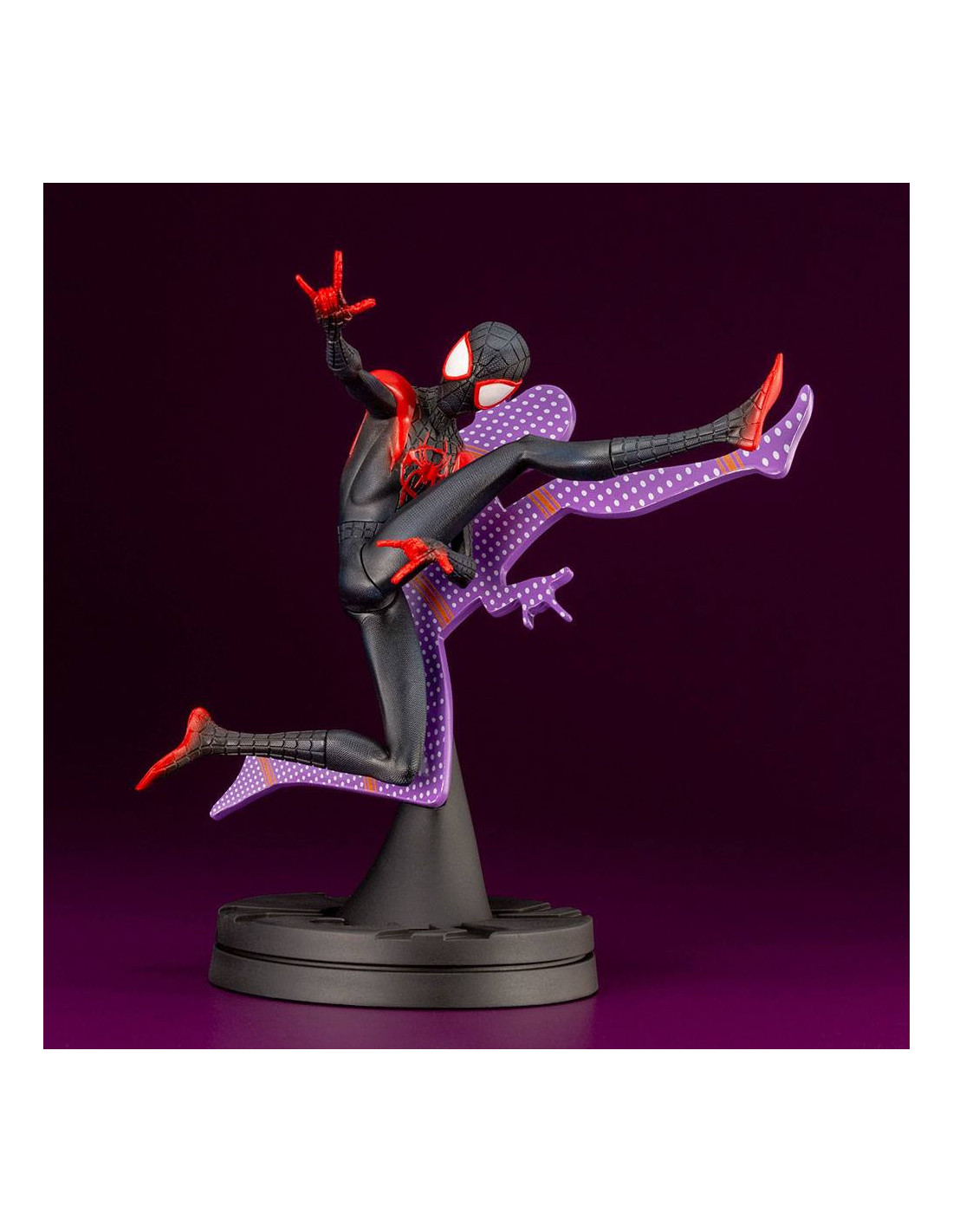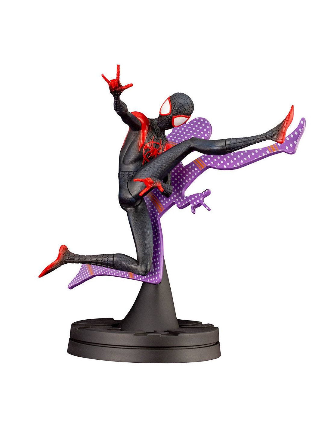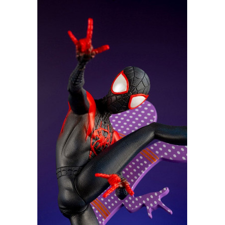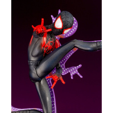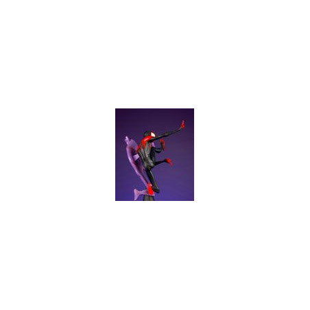 Statuette de Spider-Man - Miles Morales de Kotobukiya, collection ARTFX+. Elle est à l´échelle 1/10 et mesure 15 cm.