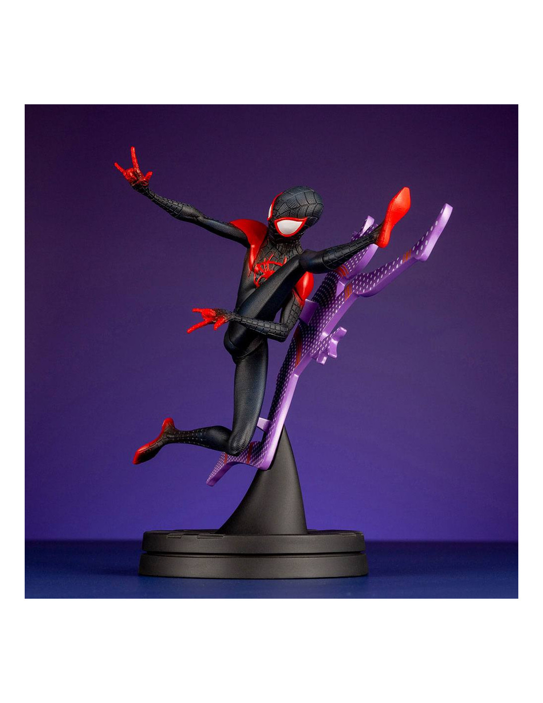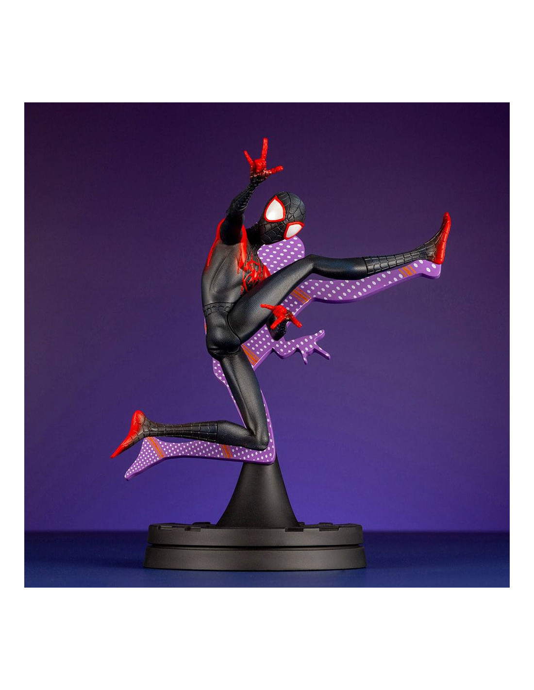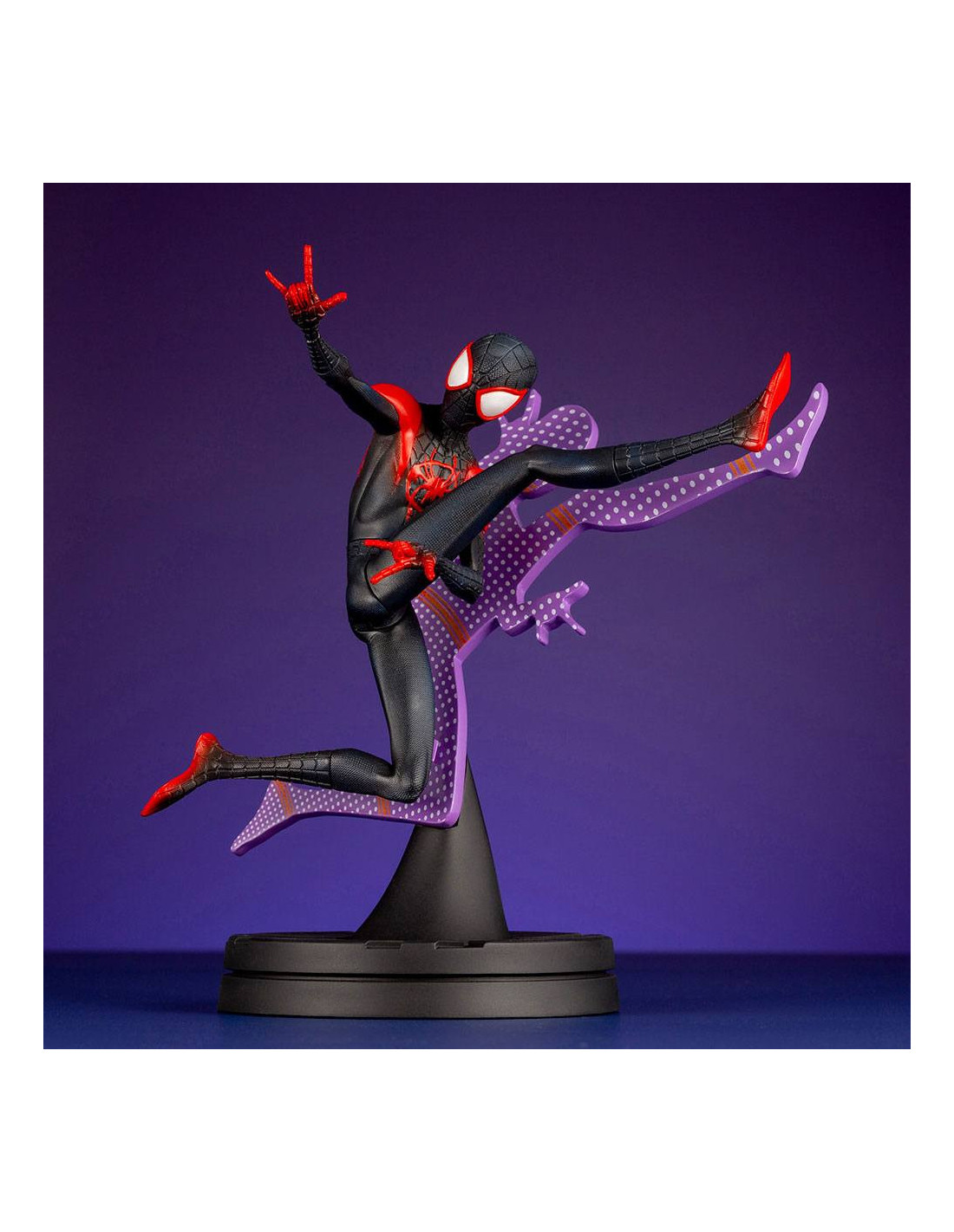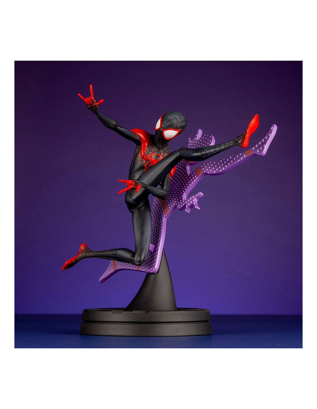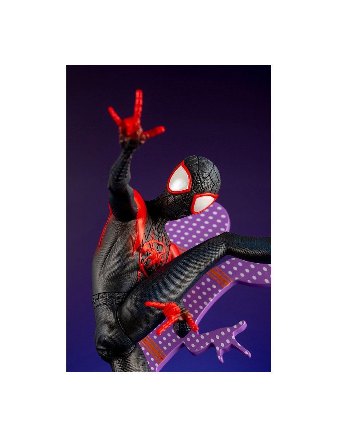 Statuette de Spider-Man - Miles Morales de Kotobukiya, collection ARTFX+. Elle est à l´échelle 1/10 et mesure 15 cm.
