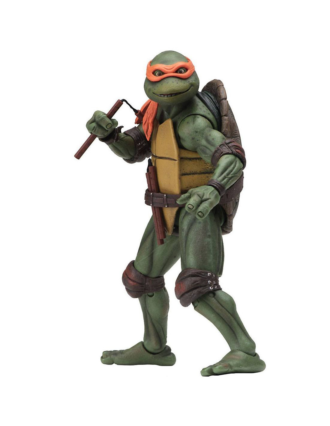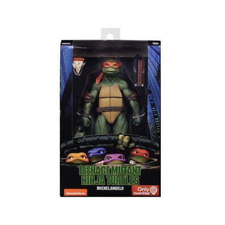 Figurine articulée de Michelangelo des Tortues Ninja. Elle mesure 18 cm et est présentée en emballage boîte-fenêtre. Accessoires fournies.