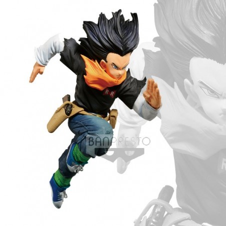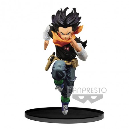 Figurine de C-17 de Dragon Ball, collection Banpresto World Figure Colosseum. Elle mesure 17cm et est présentée en boite cartonnée.