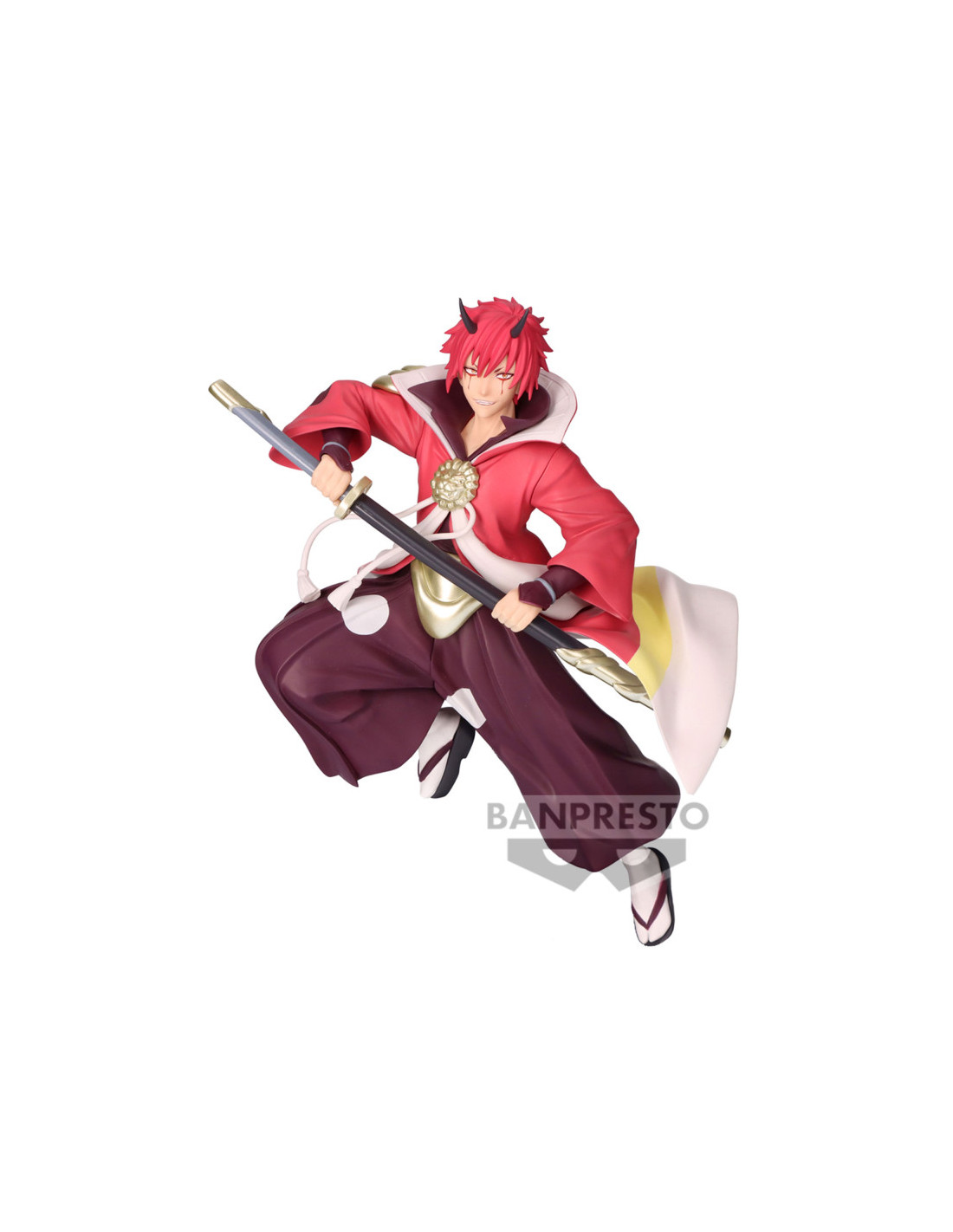 Figurine de Benimaru tirée de la série Moi, quand je me réincarne en Slime. La figurine mesure 19 cm de hauteur. Produit officiel par Banpresto / Bandai Spirits.