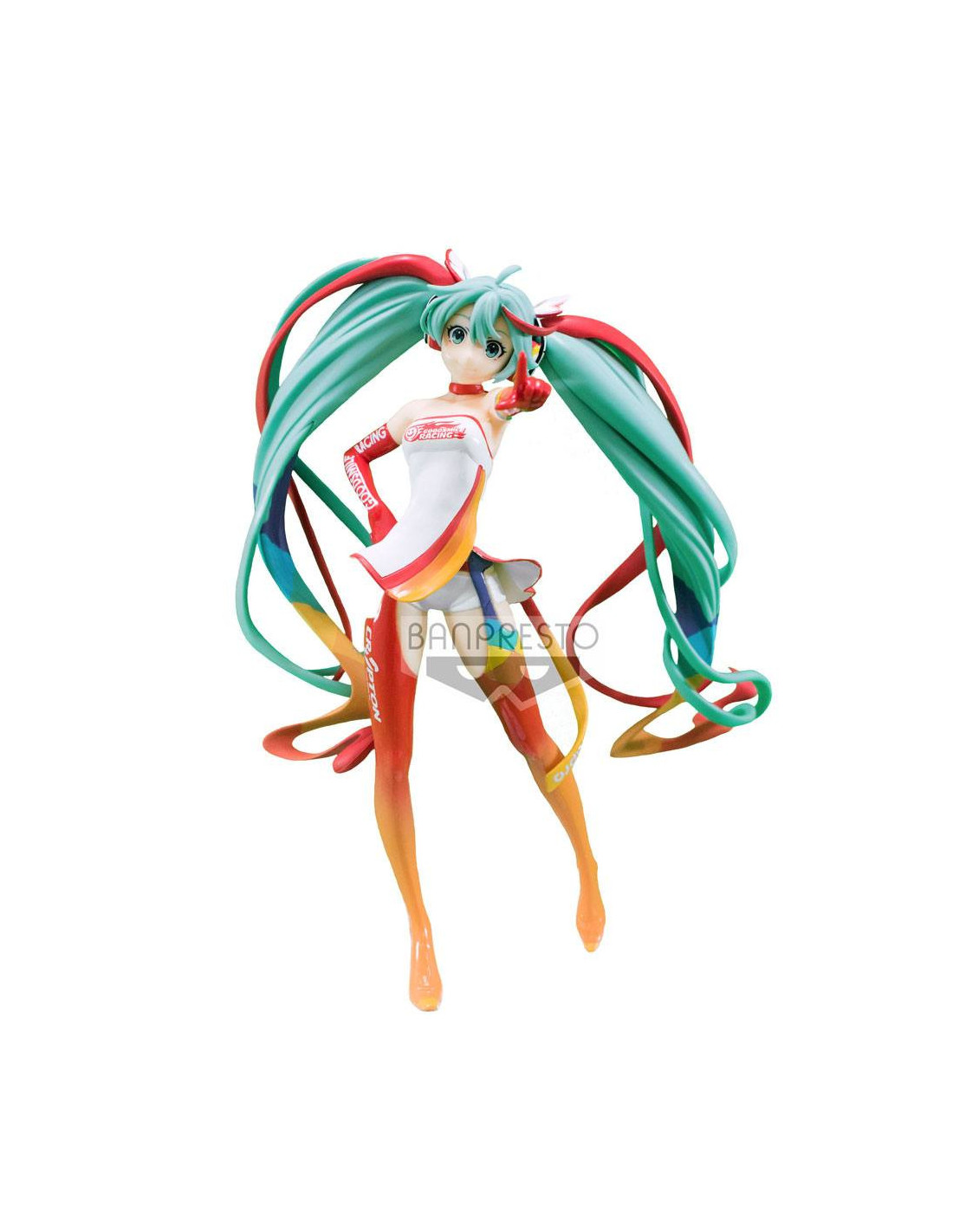 Statuette de Hatsune Miku Racing Version de la collection SQ. Elle mesure 18 cm et est présentée en boite cartonnée.