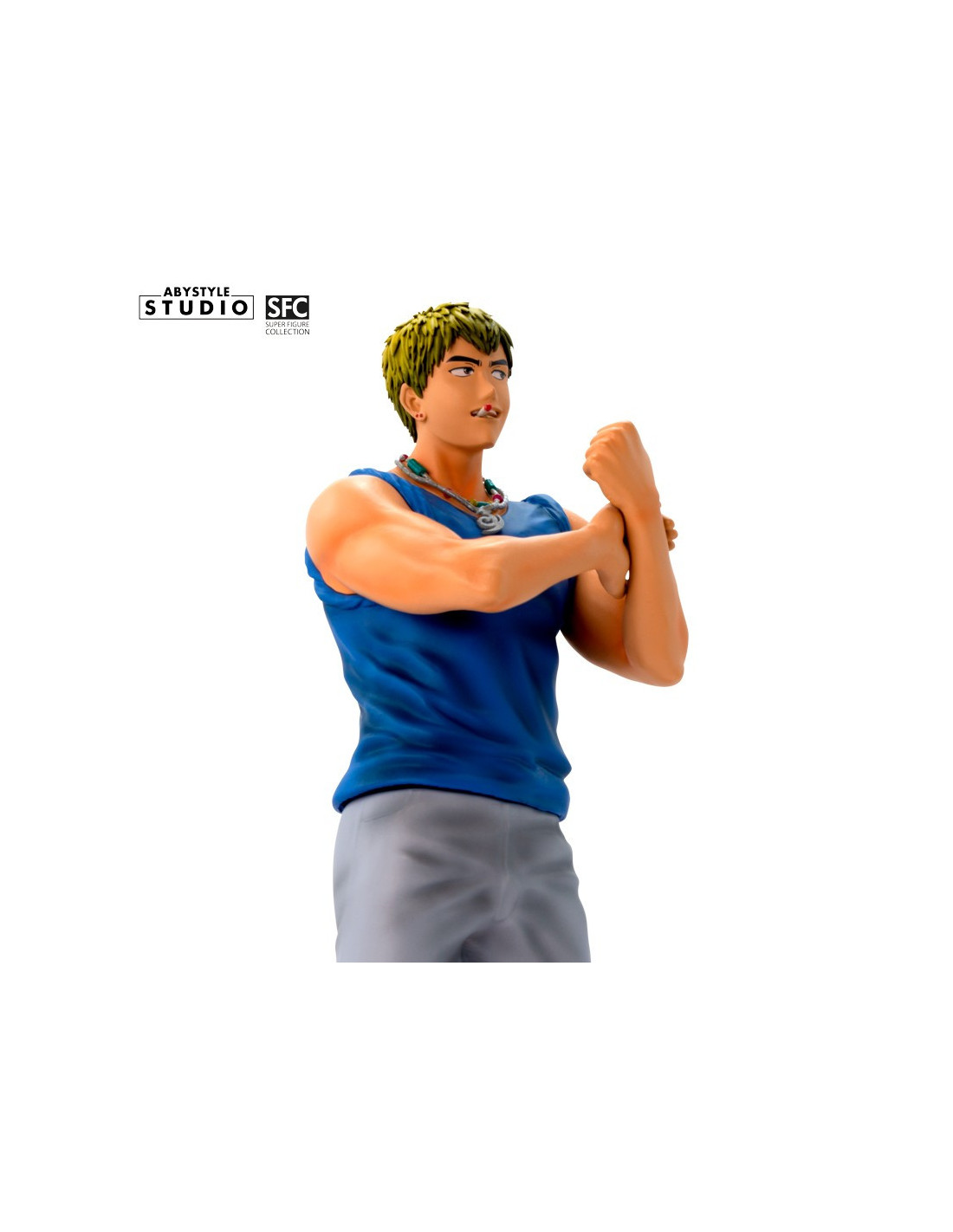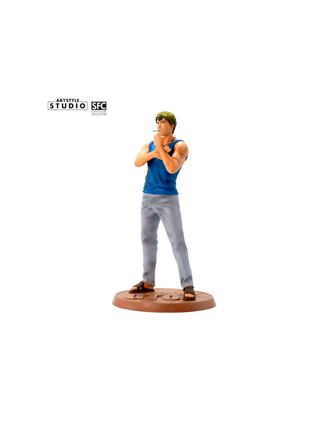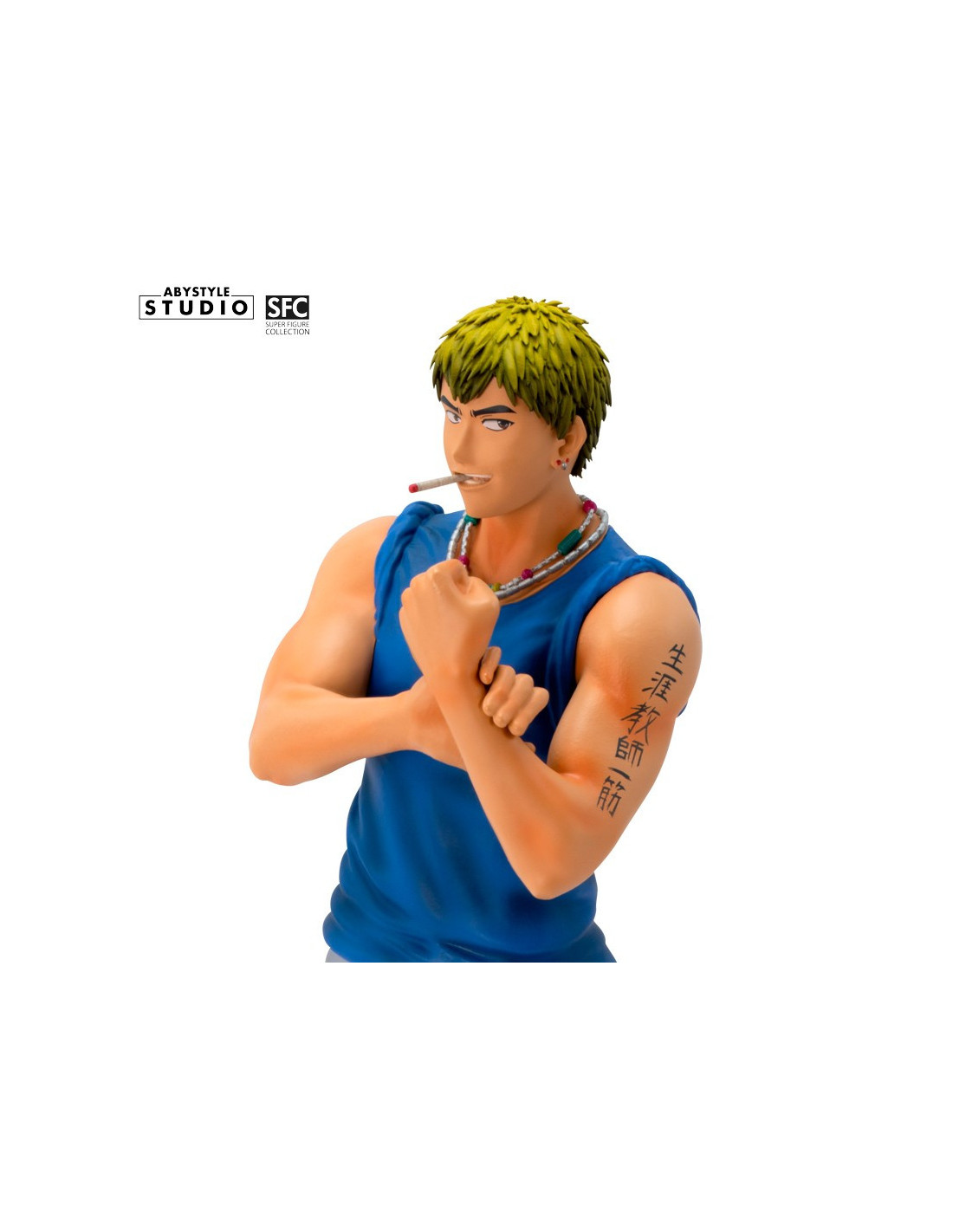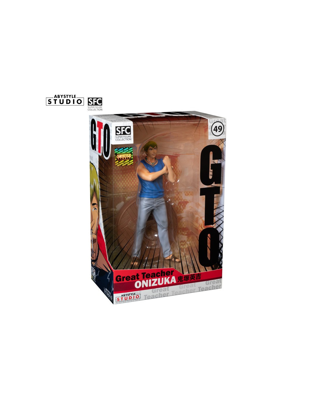 Je suis Eikichi Onizuka, 22 ans, célibataire et libre comme l'air. C'est par cette fameuse maxime que cet ancien chef de gang, reconverti en atypique professeur, se présente fièrement à qui veut l'entendre. Aussi pervers qu'attendrissant, le Great Teacher Onizuka a plus d'un tour dans son sac pour enseigner les valeurs de la vie à ses étudiants du lycée Seirin, un sérieux atout dans la gamme SFC d'ABYstyle Studio ! - Figurine en PVC de la gamme SFC - Hauteur : 18 cm - Echelle : 1/10ème