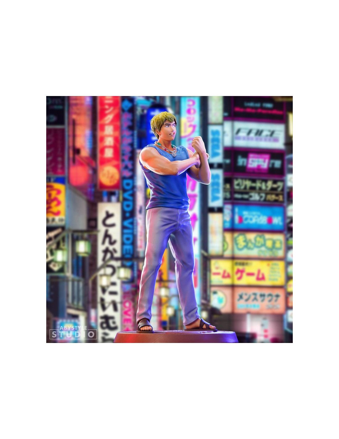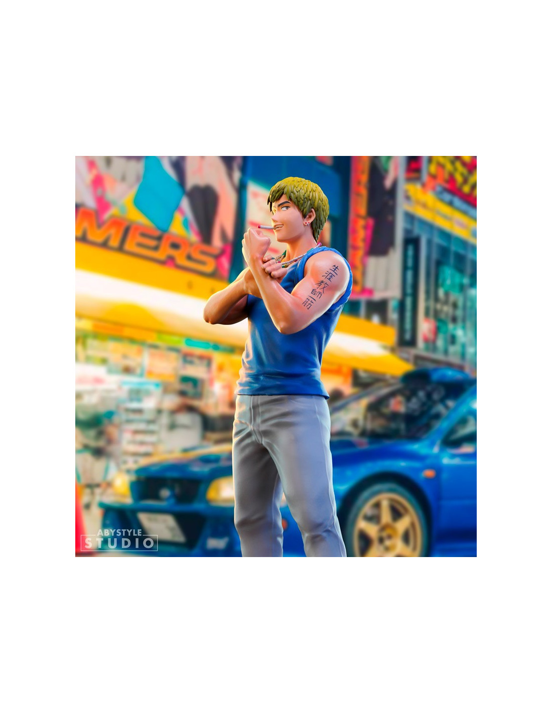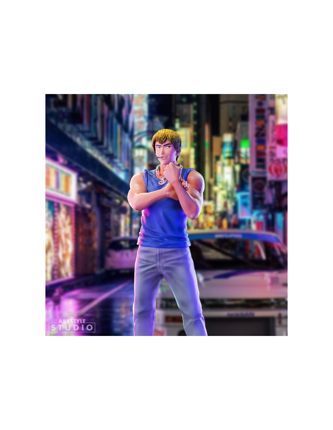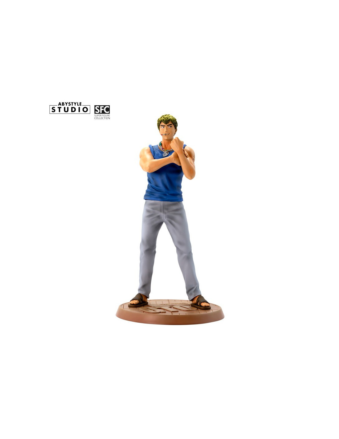 Je suis Eikichi Onizuka, 22 ans, célibataire et libre comme l'air. C'est par cette fameuse maxime que cet ancien chef de gang, reconverti en atypique professeur, se présente fièrement à qui veut l'entendre. Aussi pervers qu'attendrissant, le Great Teacher Onizuka a plus d'un tour dans son sac pour enseigner les valeurs de la vie à ses étudiants du lycée Seirin, un sérieux atout dans la gamme SFC d'ABYstyle Studio ! - Figurine en PVC de la gamme SFC - Hauteur : 18 cm - Echelle : 1/10ème