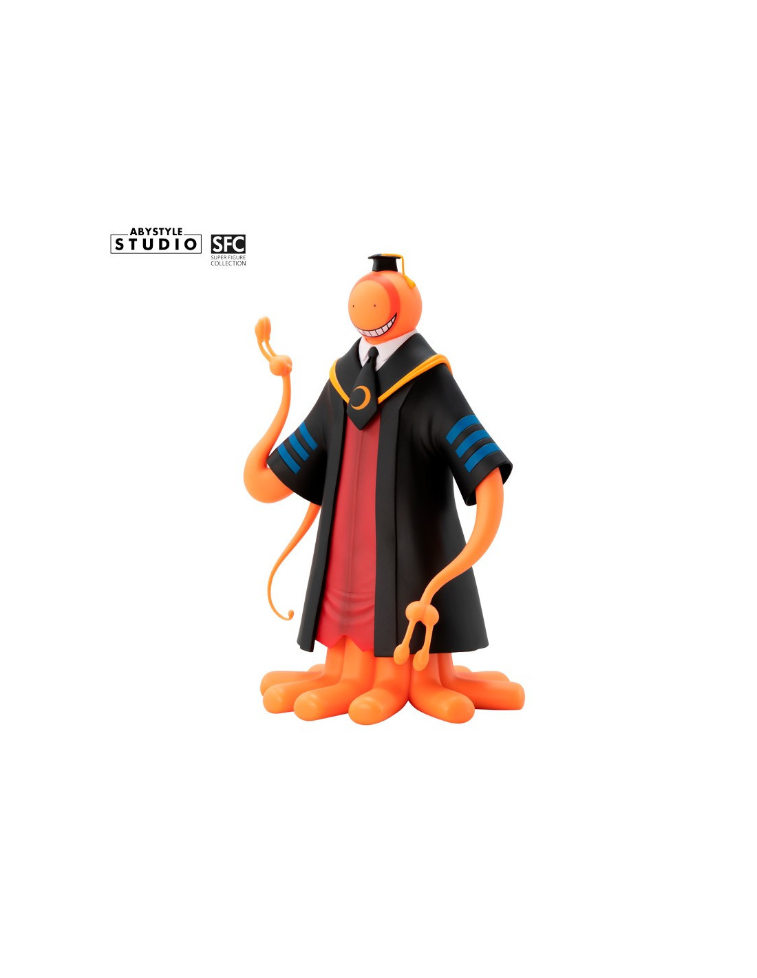 Après avoir détruit la Lune, Koro Sensei arrive sur Terre, non seulement pour éduquer une classe de cancres, mais aussi pour rejoindre la gamme de figurine ABYstyle Studio ! Vêtu de son uniforme de professeur, ce malicieux poulpe extraterrestre change de couleur de peau au gré de ses émotions. Ici en version orange, qui exprime sa satisfaction ou la bonne réponse d'un de ses élèves. - Figurine en PVC de la gamme SFC - Hauteur : 20 cm