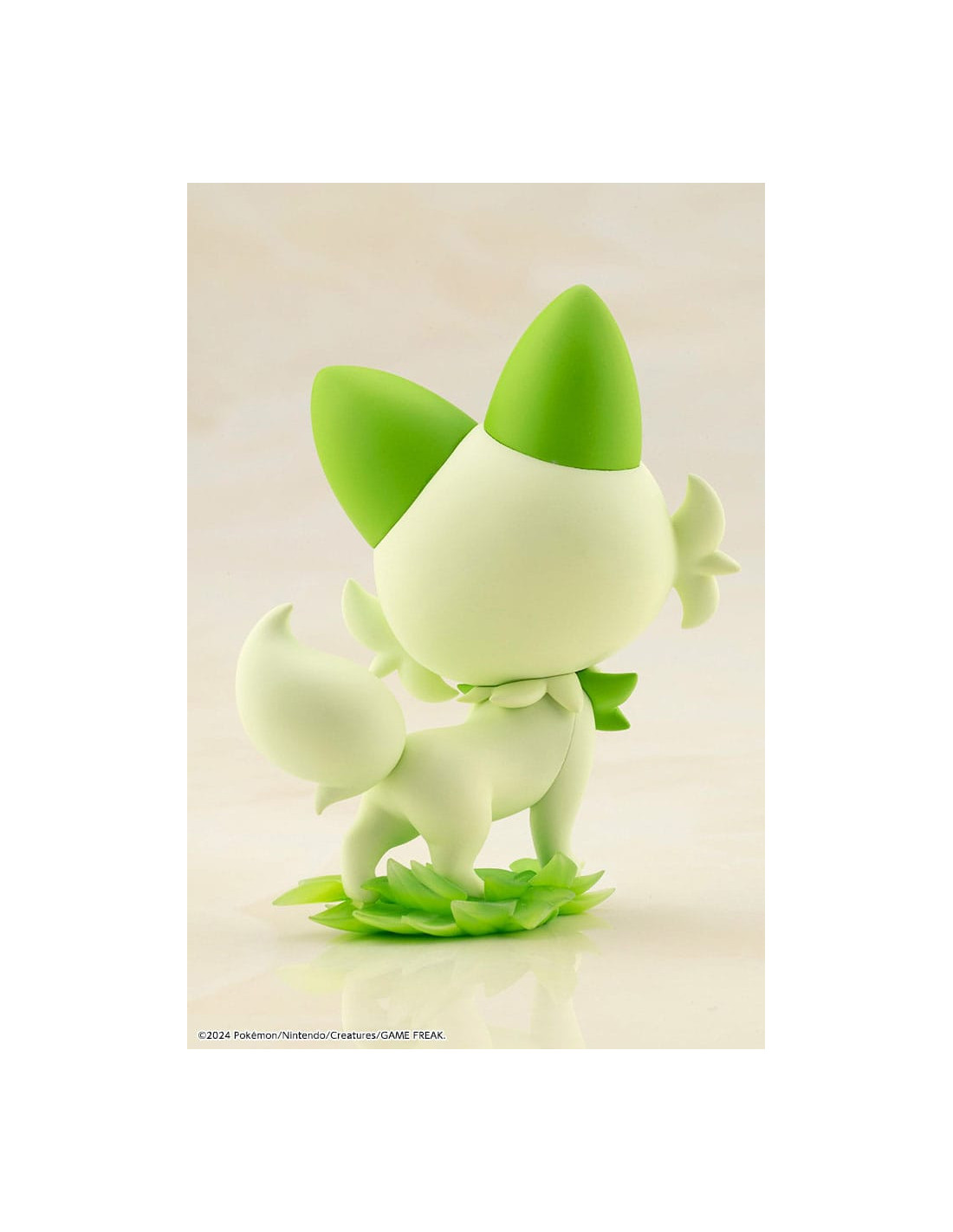 Juste à côté des pieds de Juliana se trouve son partenaire, Sprigatito. Un soin particulier a été apporté à la nature gracieuse du Pokémon.