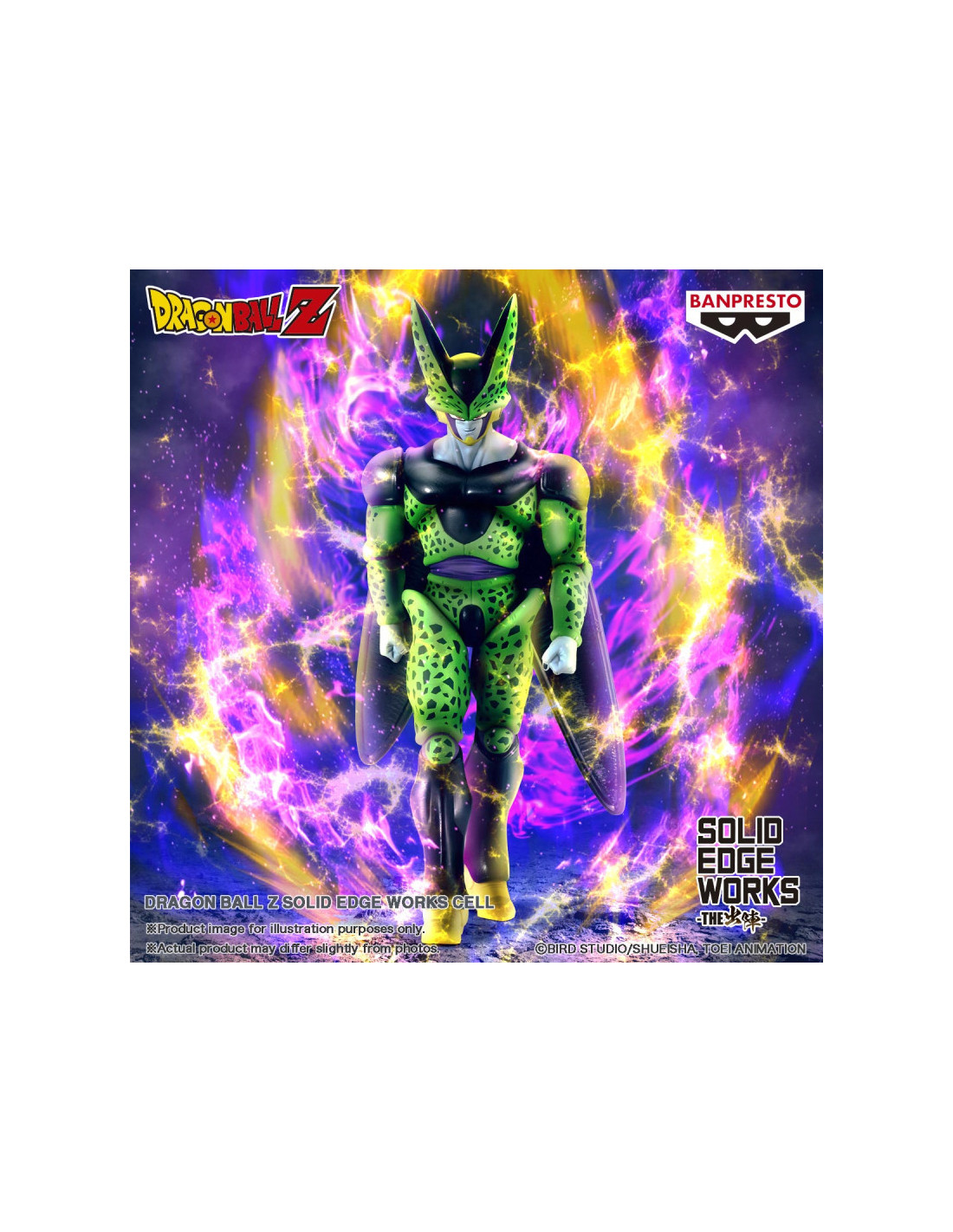 Figurine de Cell dans la collection Solid Edge Works et tirée de Dragonball Z. Elle mesure 20 cm de hauteur. Produit officiel par Banpresto / Bandai Spirits.