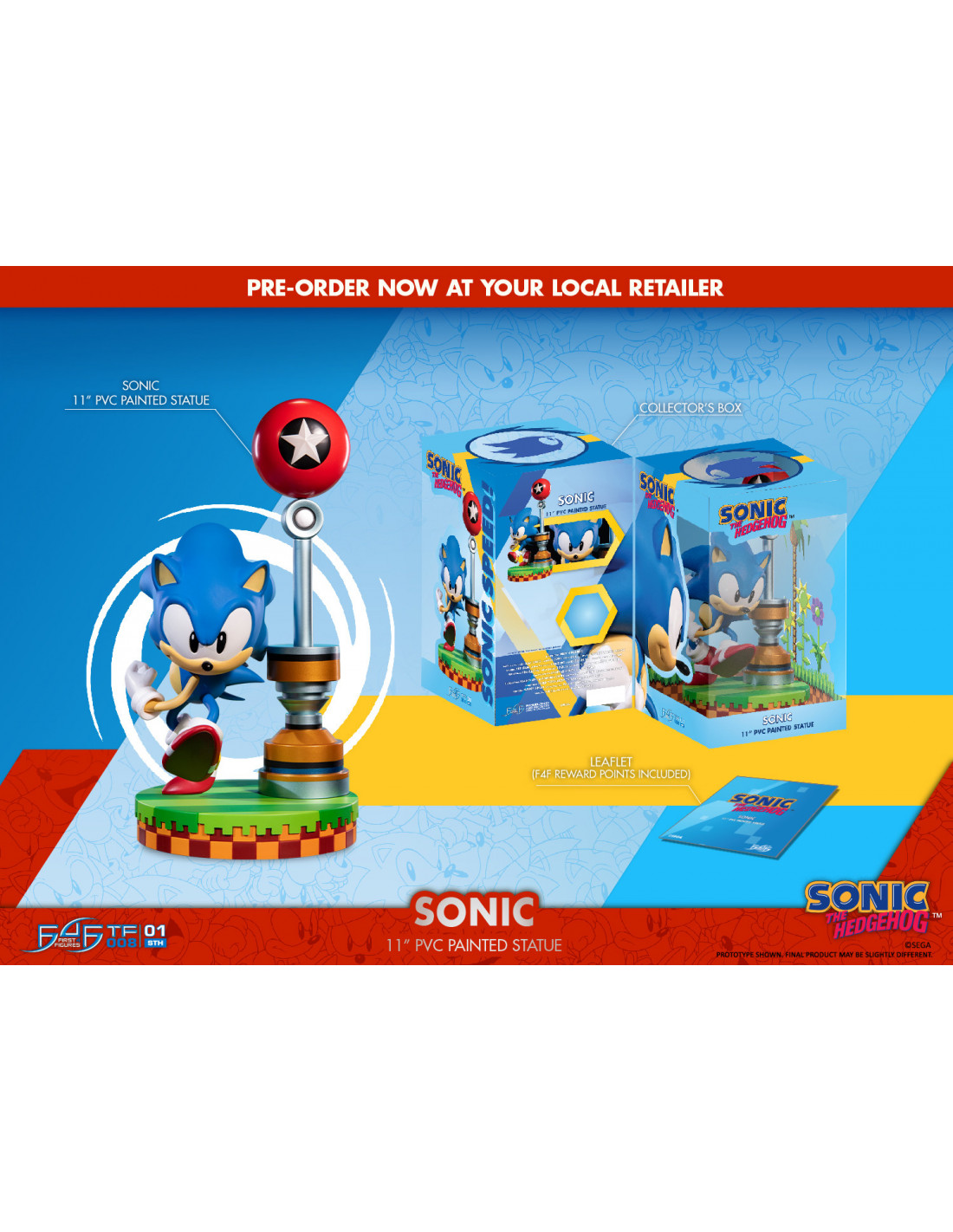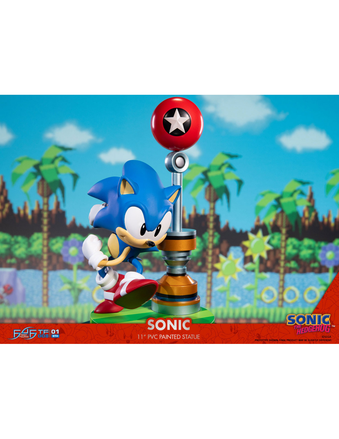Statuette de Sonic le hérisson de la grande marque First 4 Figures. Elle mesure 26 cm et est présentée en boite vitrine.