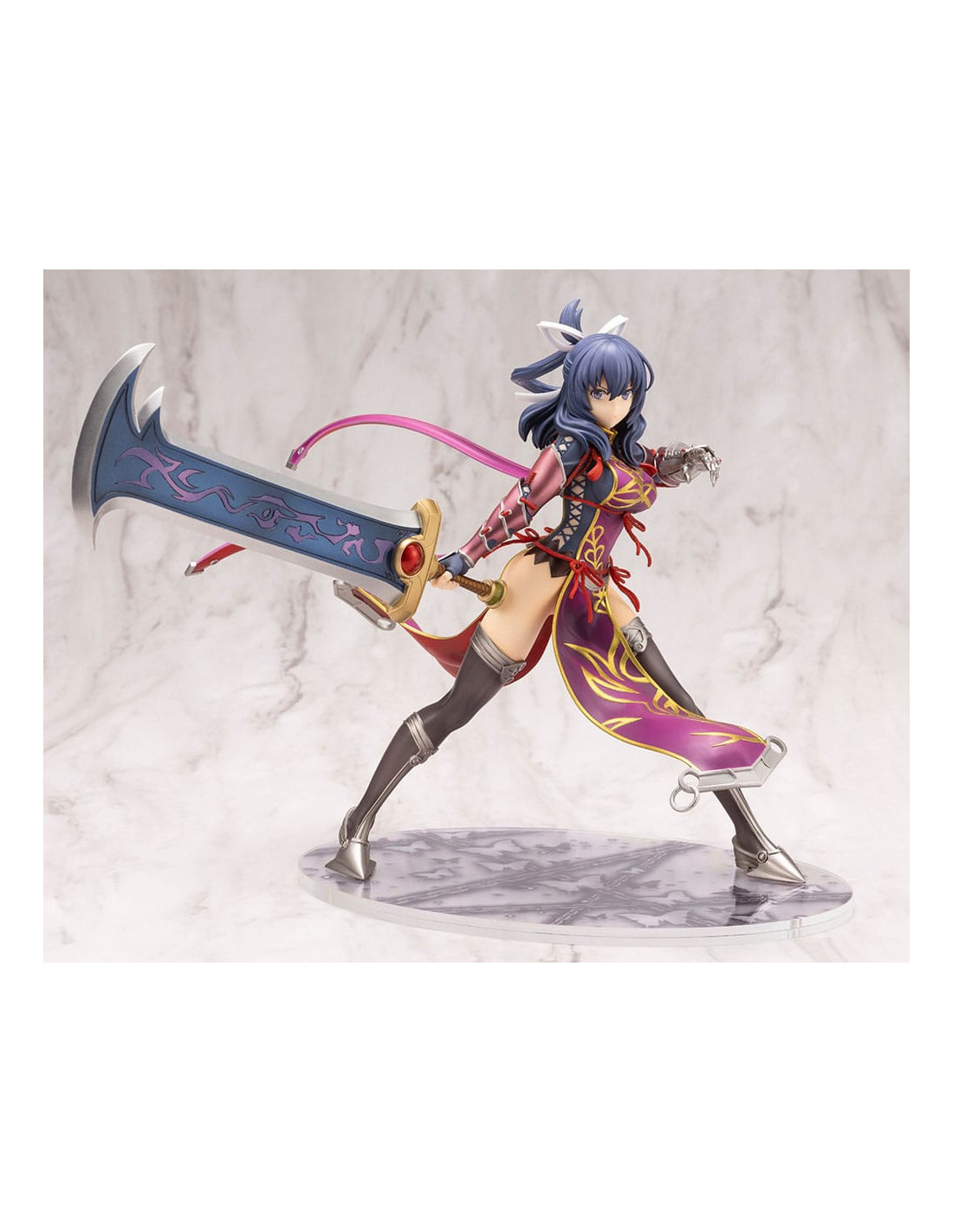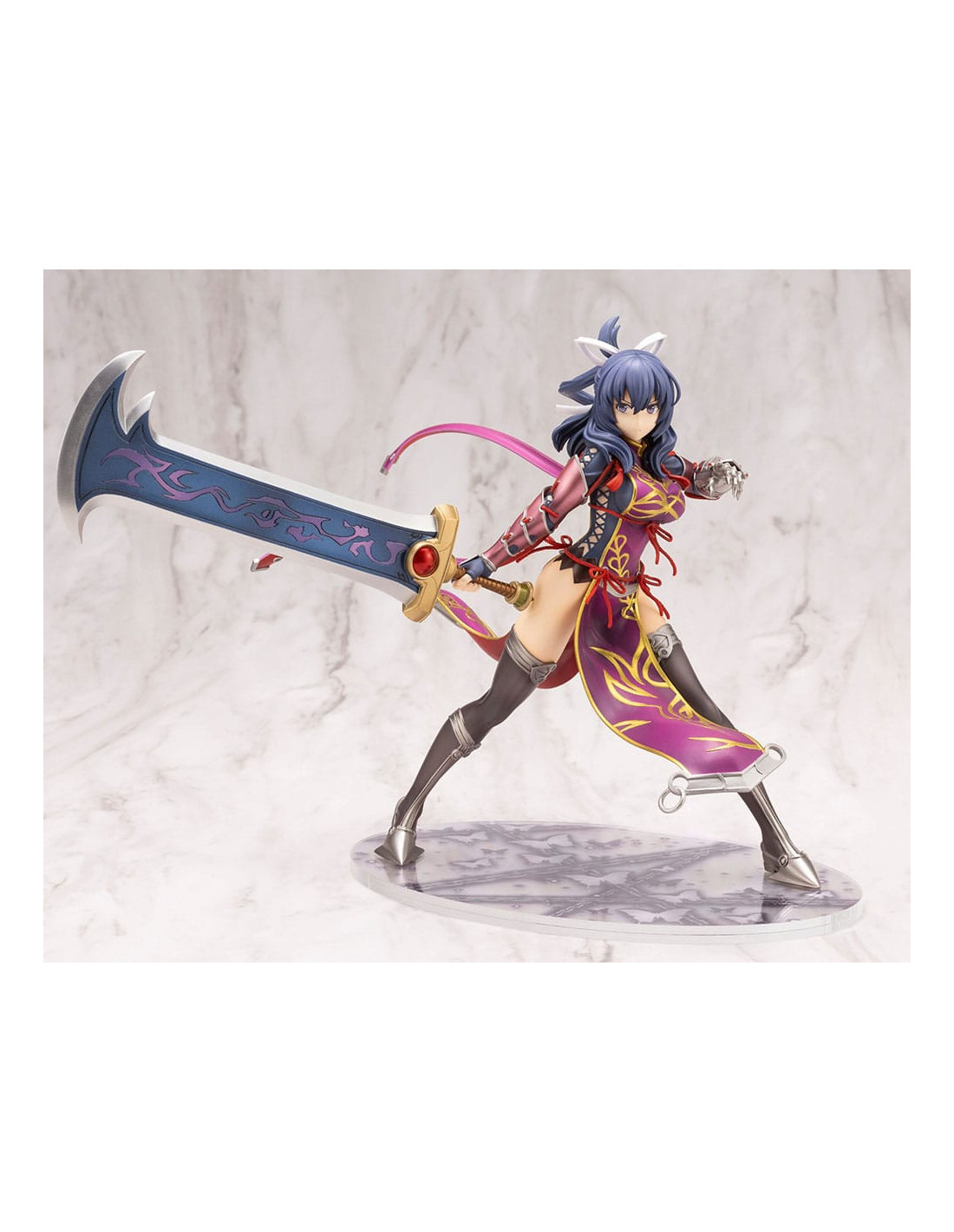 Statuette en PVC à l´échelle 1/8 taille env. 20 cm sur socle décor, en emballage boîte-fenêtre. Figurine de la collection Kotobukiya.
