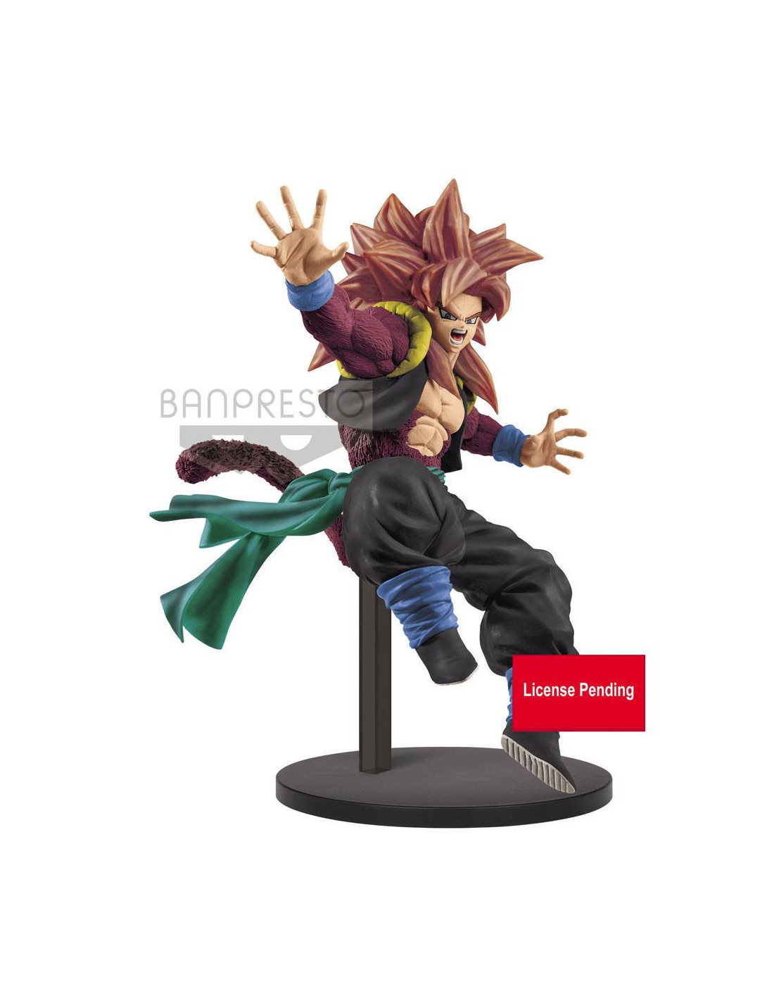 Statuette de Gogeta SSJ4 de Dragon Ball Heroes. Elle mesure 18 cm et est présentée en boite cartonnée.