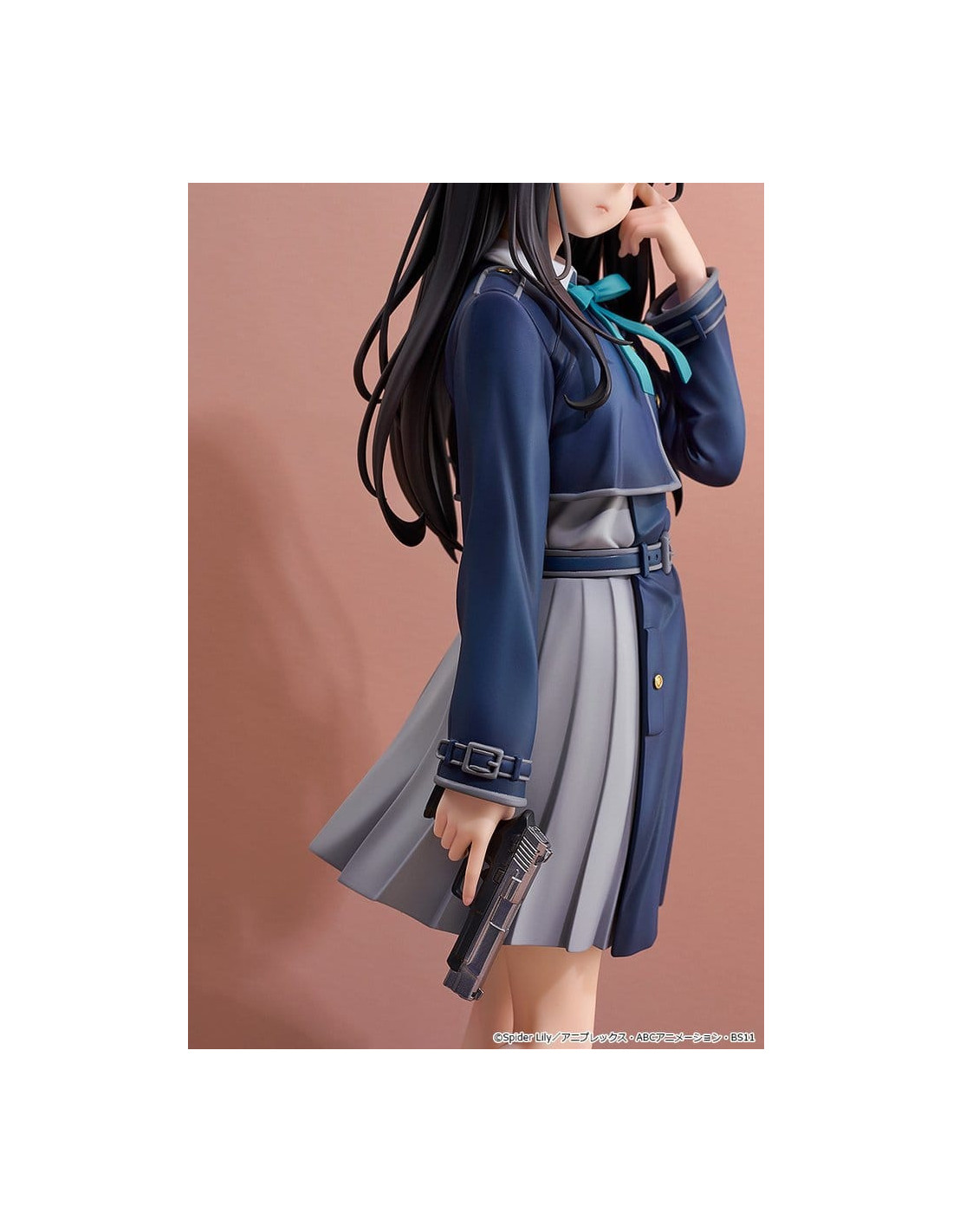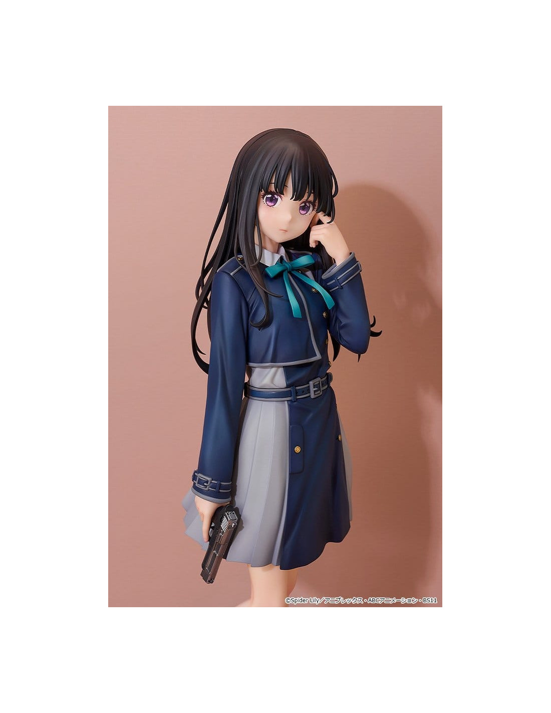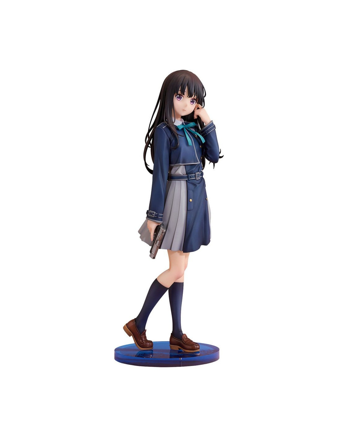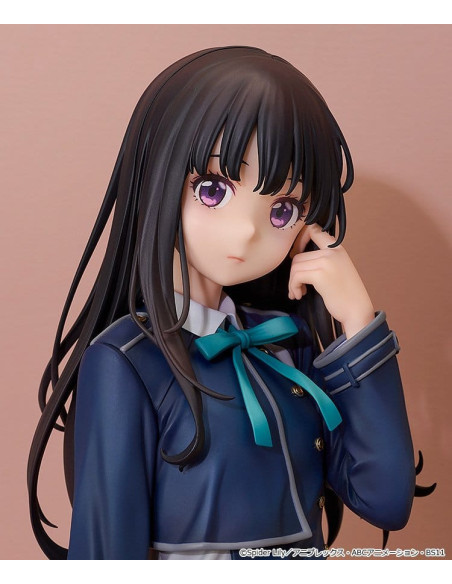 Voici une figurine à l'échelle 1/6 de Takina Inoue, inspirée du visuel principal de la série. Le produit fini en plastique peint mesure environ 27 cm de haut.