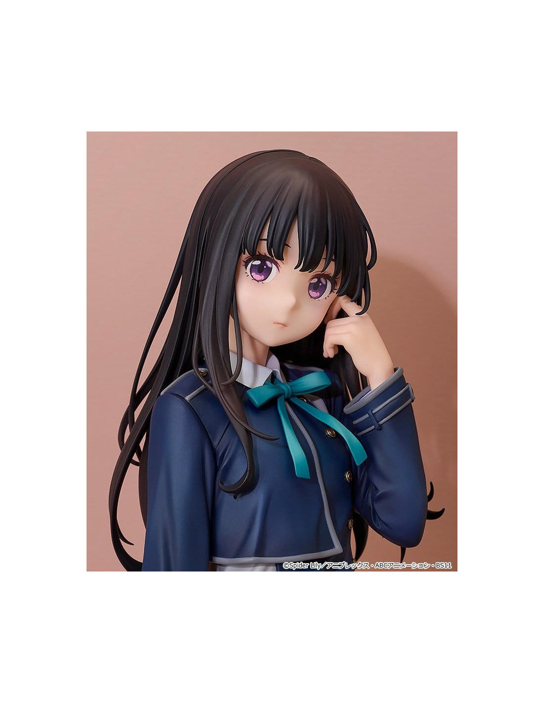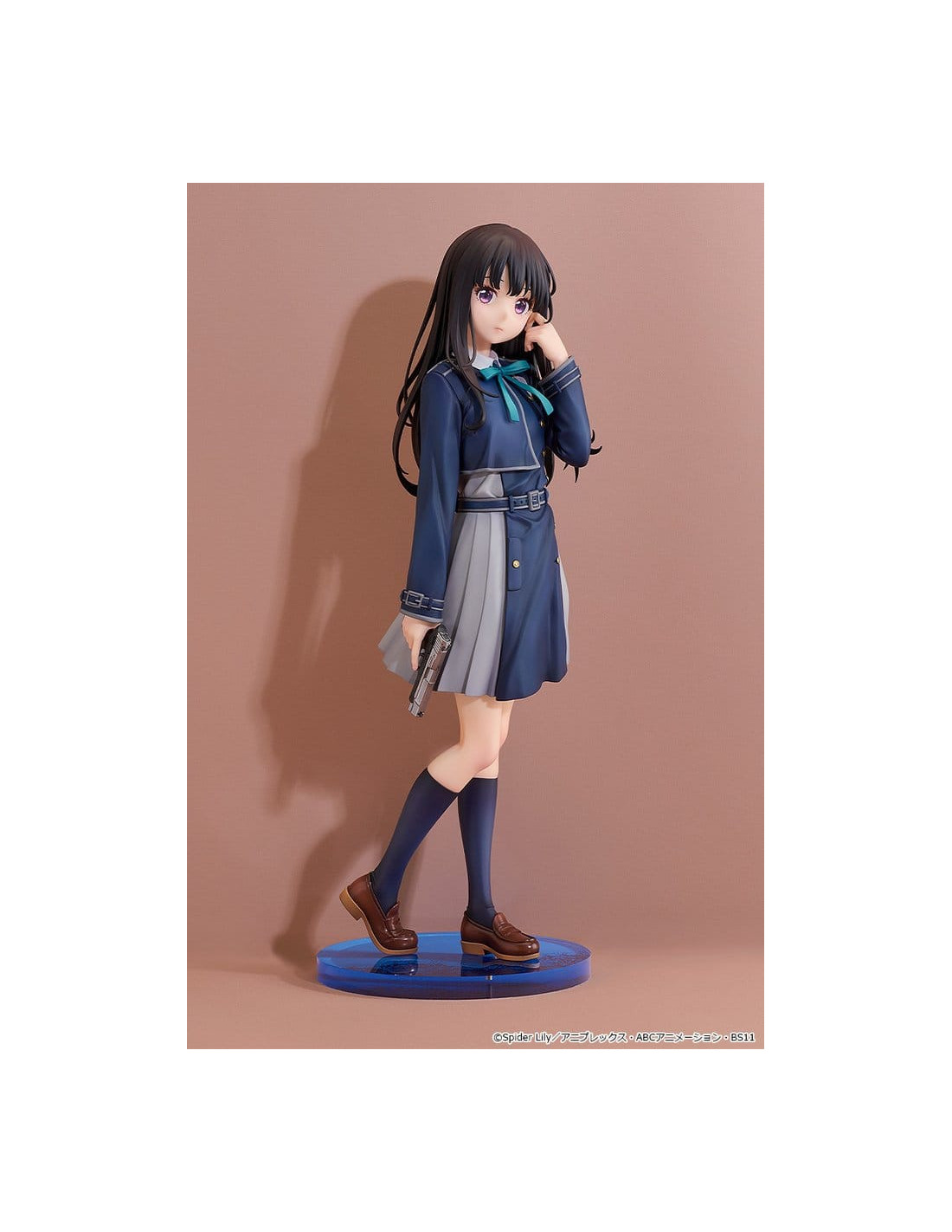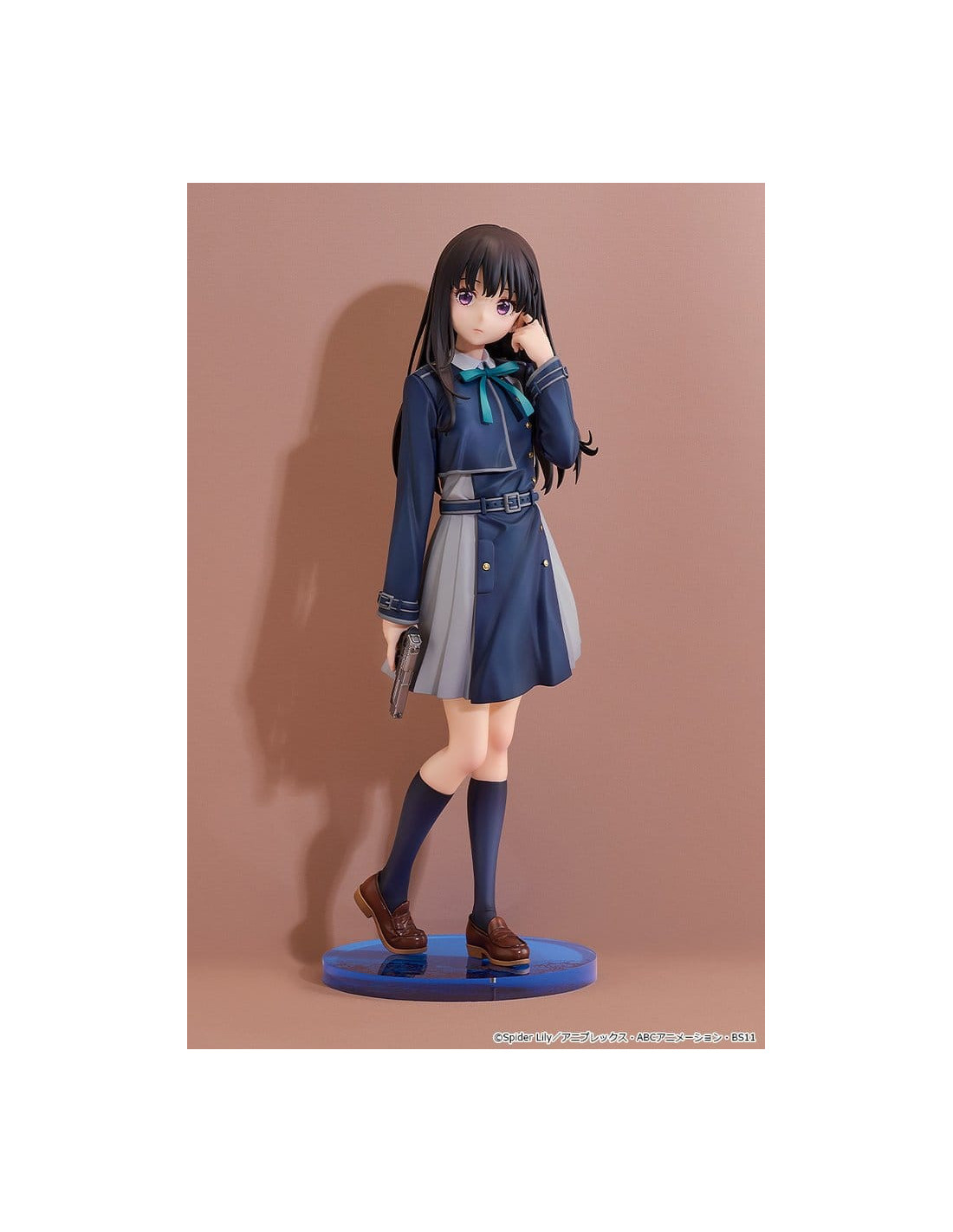 Voici une figurine à l'échelle 1/6 de Takina Inoue, inspirée du visuel principal de la série. Le produit fini en plastique peint mesure environ 27 cm de haut.