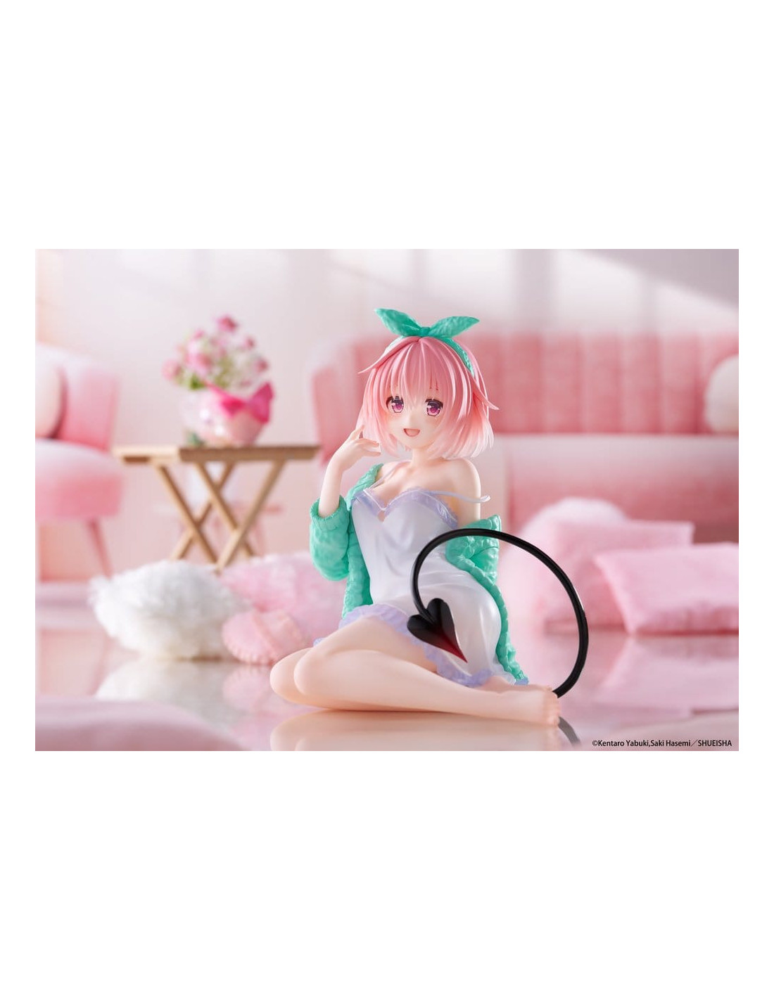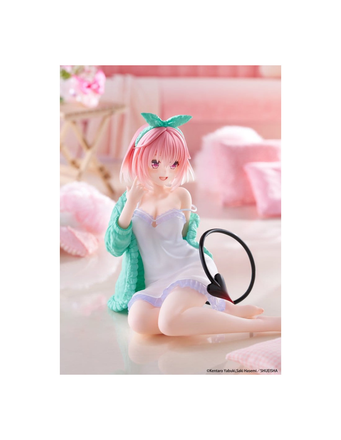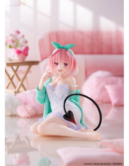 Ceci est une figurine Desktop Cute de Momo (Roomwear Ver.) de la série 'To Love-Ru Darkness'. Fabriquée par Taito, cette figurine de collection mesure environ 13 cm de haut.