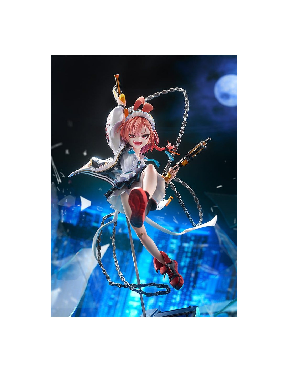 Du jeu populaire "Blue Archive" vient une figurine à l'échelle 1/7 de Neru, la chef de C&C de la Millennium Science School ! La figurine a été soigneusement sculptée et peinte dans les moindres détails, capturant un instantané d'un moment où Neru court librement sur le champ de bataille avec ses pistolets Twin Dragon à la main. La pose dynamique de Neru et son sourire déterminé travaillent main dans la main pour créer une figurine accrocheuse et impressionnante. L'expression de Neru apparaît différemment selon l'angle sous lequel elle est vue, vous permettant de vivre l'excitation de la bataille de multiples façons. La veste souvenir qu'elle porte par-dessus sa tenue de femme de chambre a été soigneusement peinte avec une peinture nacrée pour recréer les textures uniques de sa tenue, y compris la broderie sur le dos et les manches. Twin Dragon, reliés par des chaînes, ont également été fidèlement sculptés pour un aspect réaliste. Assurez-vous d'ajouter l'invincible Neru à votre collection !