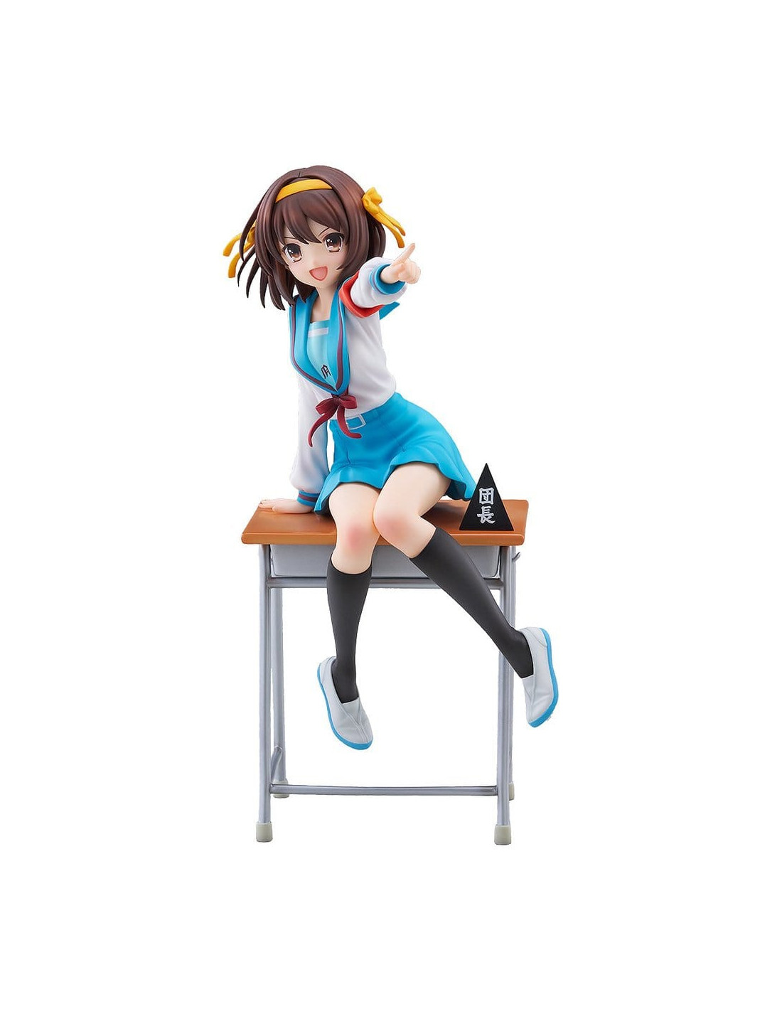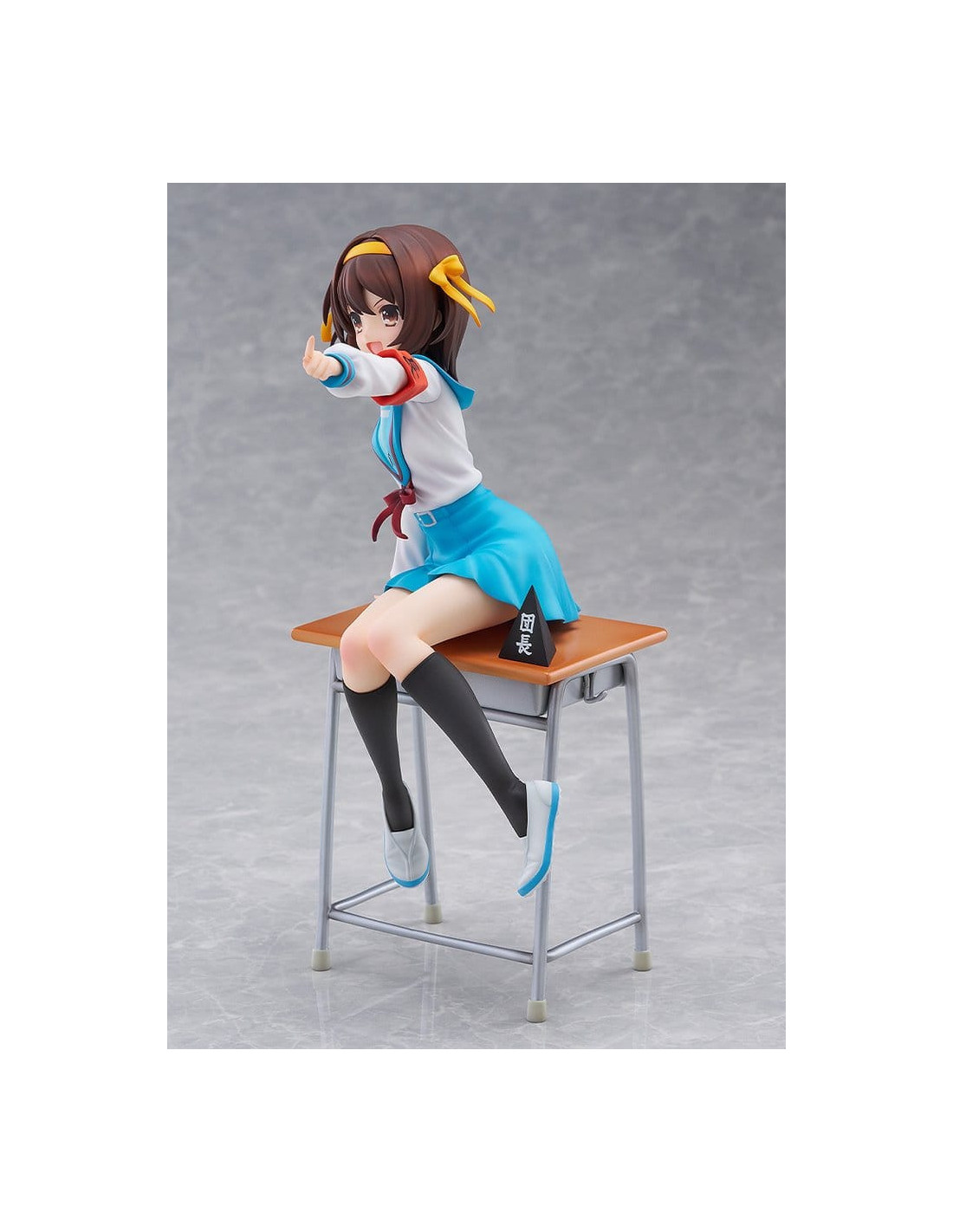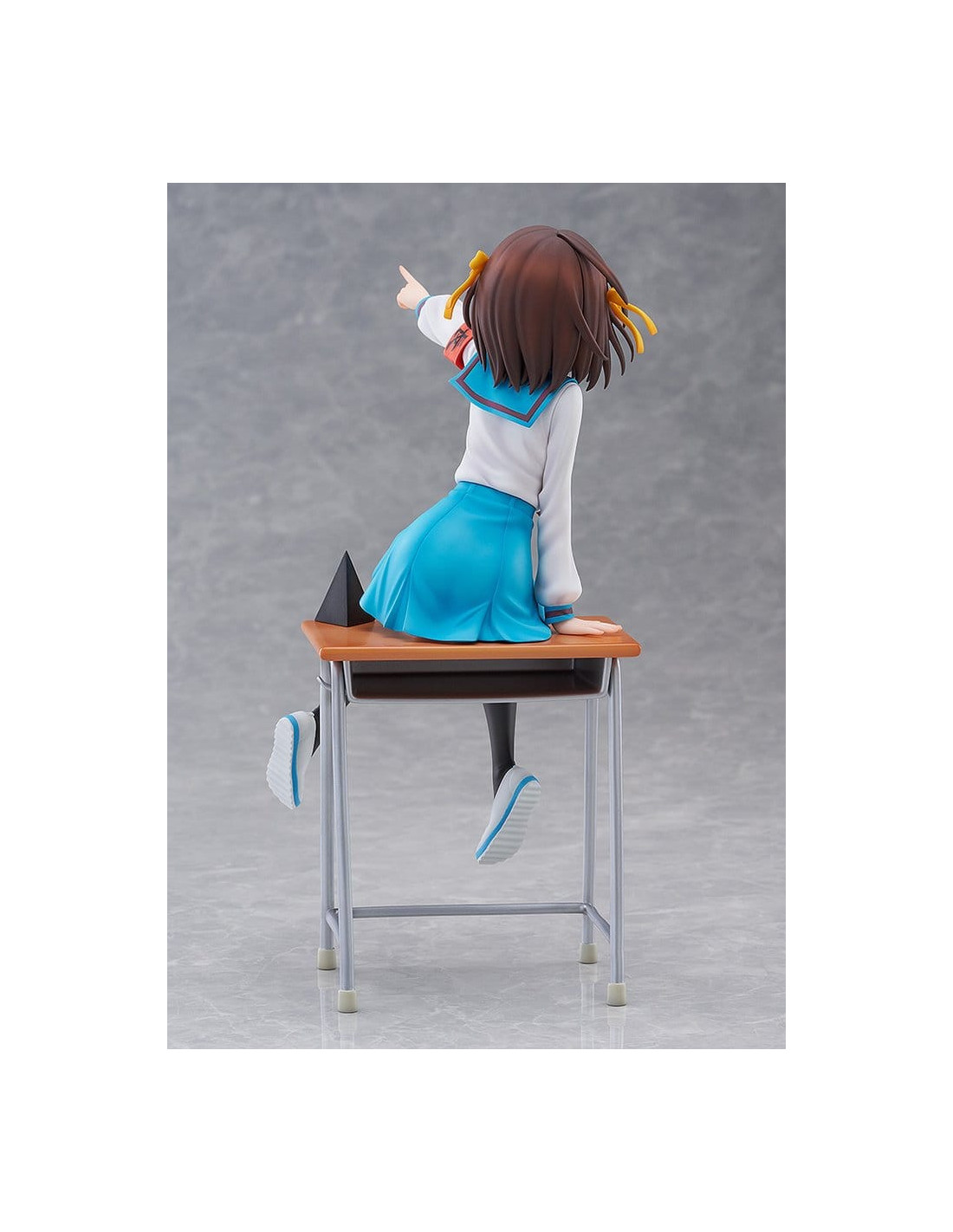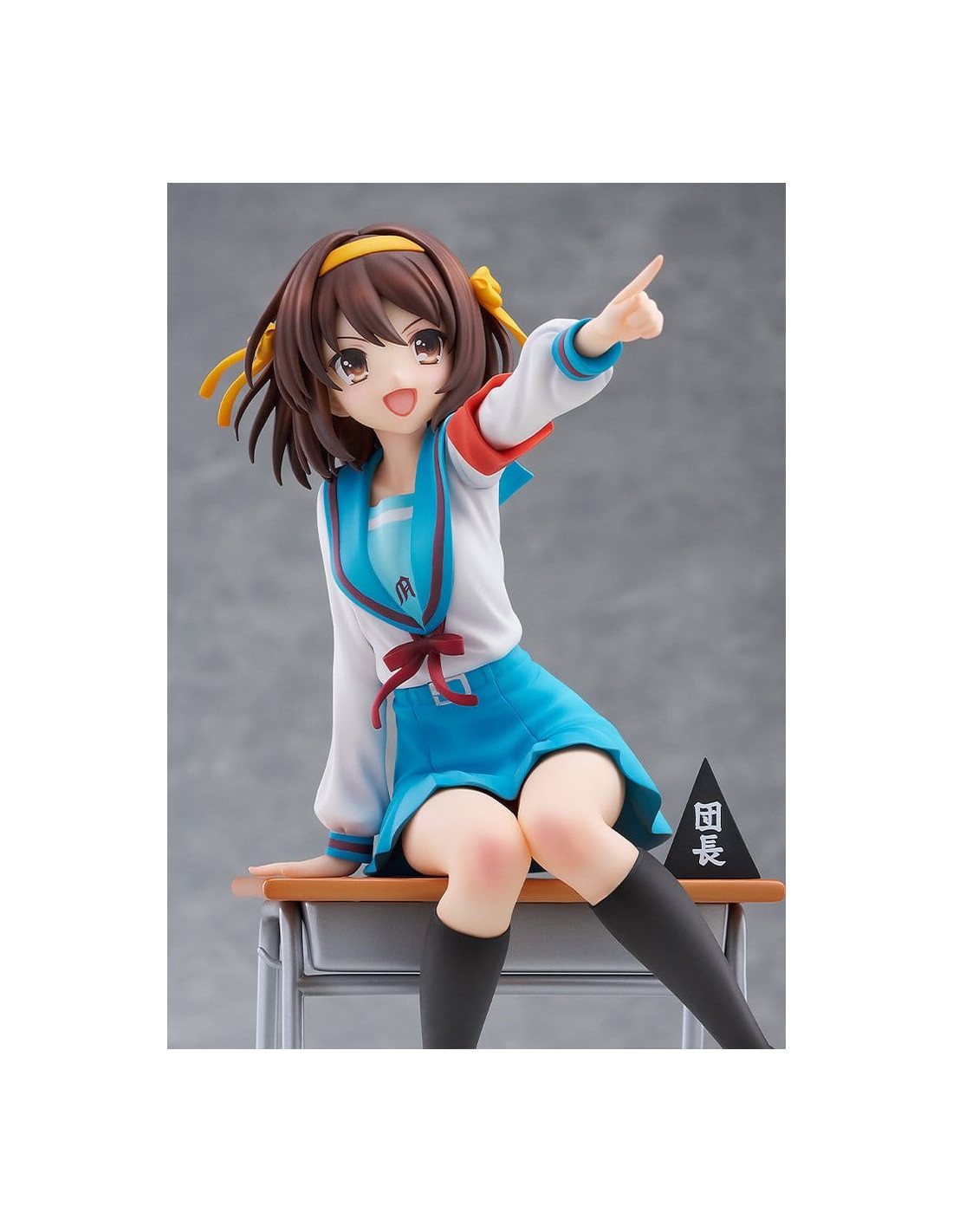 Elle est sculptée dans une pose dynamique, penchée en avant comme si elle était sur le point de parler, incarnant pleinement la personnalité énergique de Haruhi.