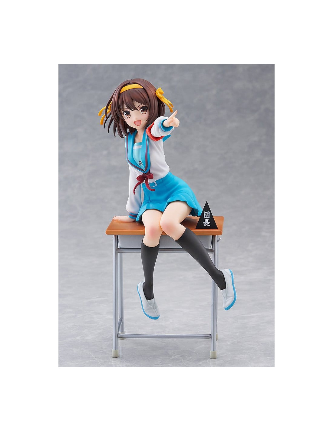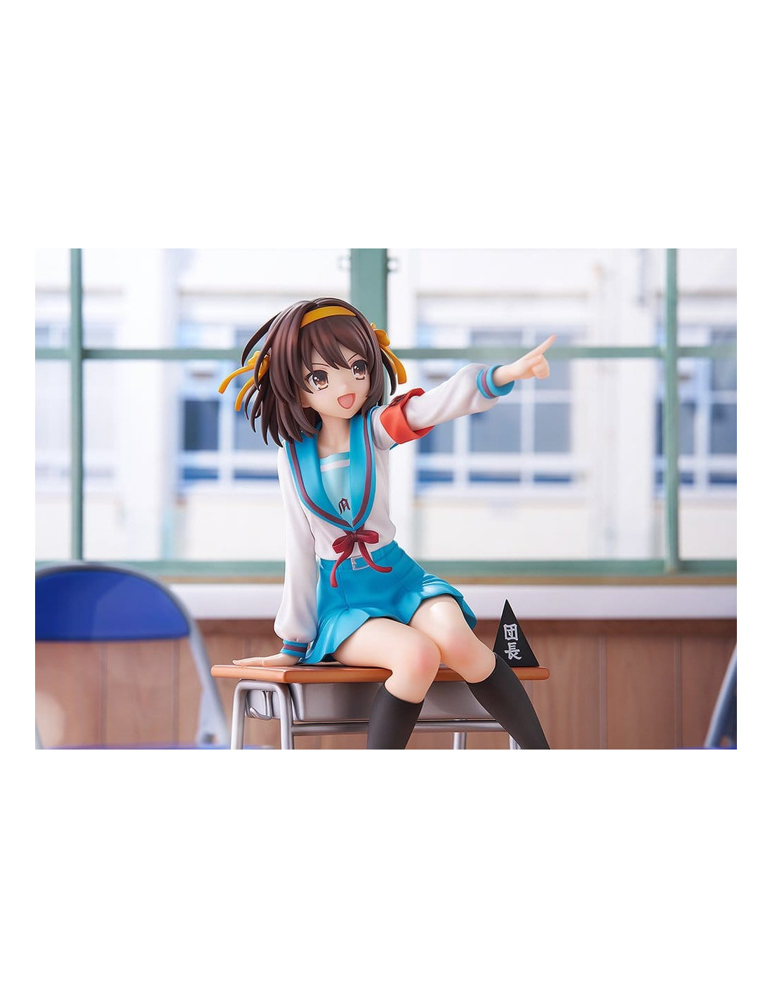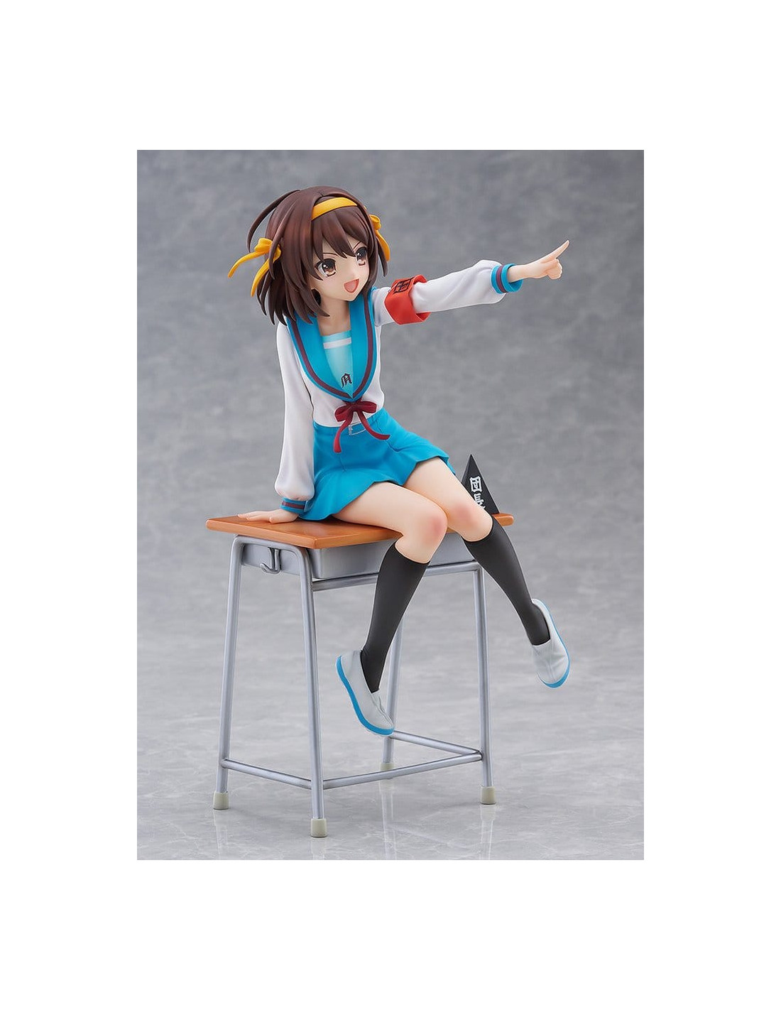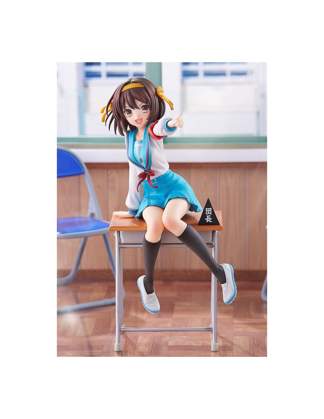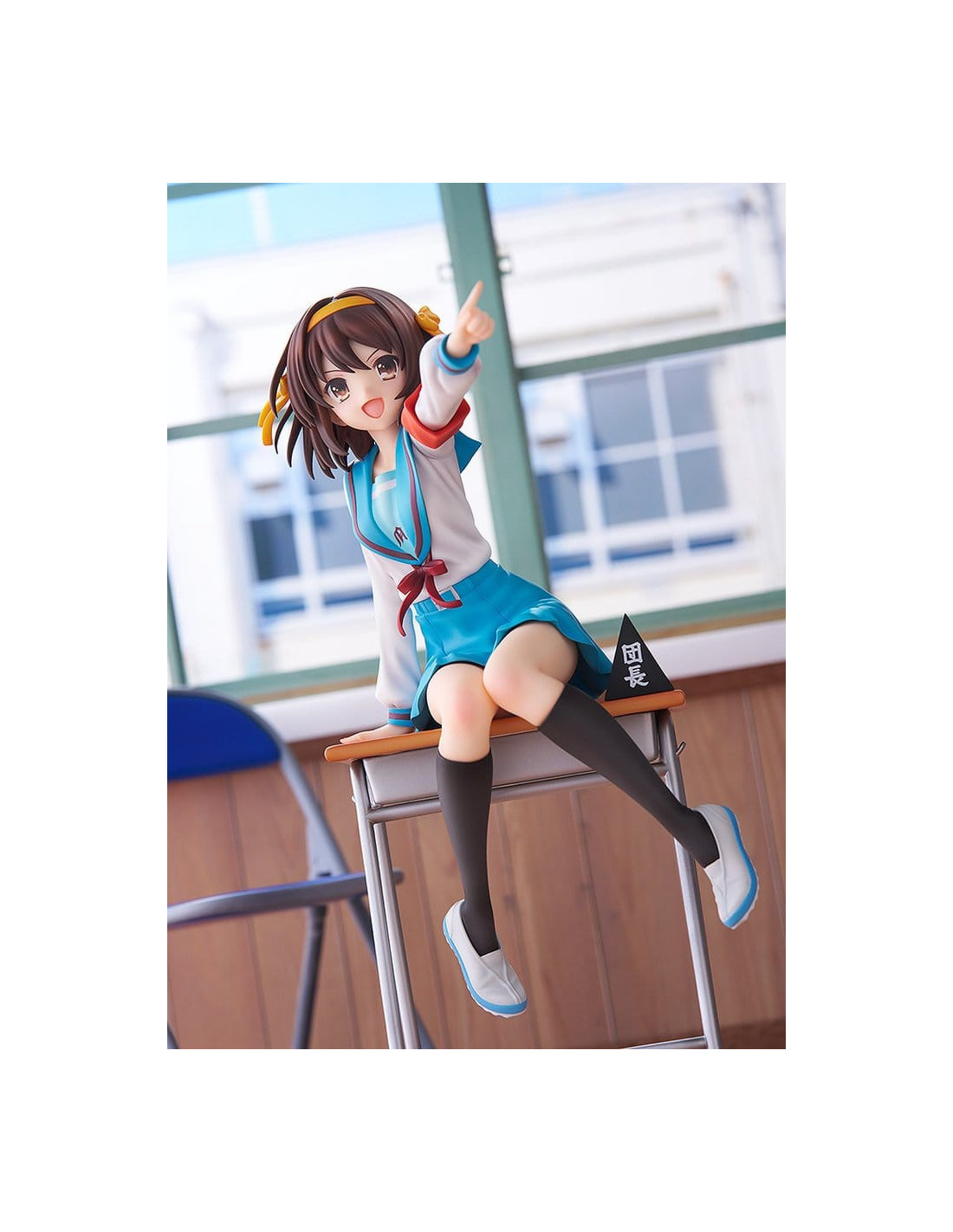 Elle est sculptée dans une pose dynamique, penchée en avant comme si elle était sur le point de parler, incarnant pleinement la personnalité énergique de Haruhi.