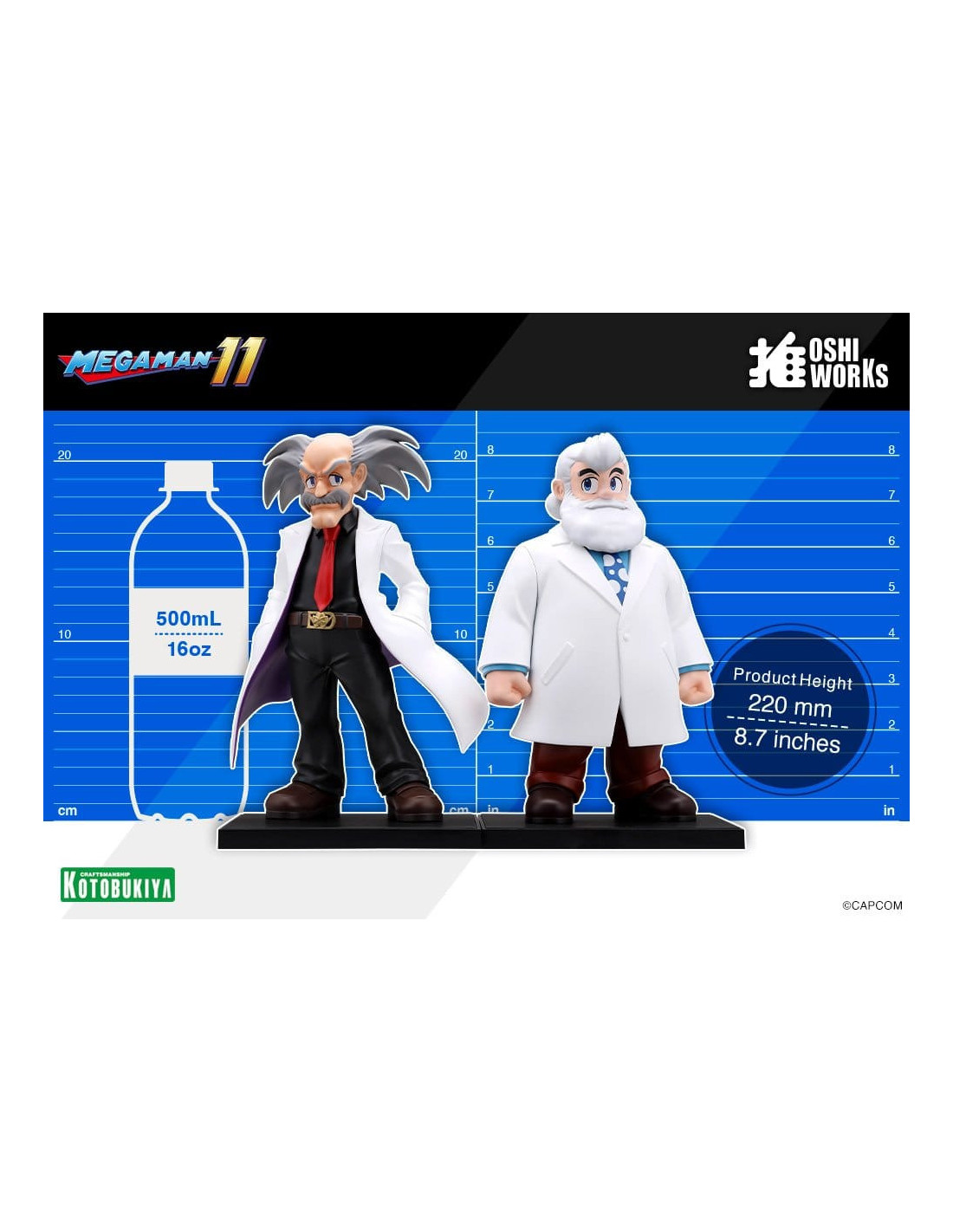 Abordable, à collectionner et AMUSANT ! Voici OSHI WORKS, une nouvelle série de Kotobukiya ! Basé sur « oshi », le mot japonais pour favori, OSHI WORKS a pour but de donner vie à vos personnages bien-aimés à des prix abordables. Que vous commenciez tout juste votre collection de figurines ou que vous soyez un collectionneur chevronné à la recherche de quelque chose de plus décontracté, OSHI WORKS convient à toutes sortes de fans d'« oshi ». Chaque figurine est livrée sur une base carrée standardisée qui la rend facile à collectionner et à exposer, de sorte qu'elle peut être montrée sous tous les angles. Bien sûr, Kotobukiya ne fera jamais de compromis sur notre qualité légendaire et notre peinture impeccable, tout en maintenant des prix abordables. Exposez vos figurines OSHI WORKS à côté de vos autres produits dérivés ou commencez une toute nouvelle collection avec la nouvelle série de Kotobukiya ! Abordable, à collectionner et AMUSANT ! Dr. Wily & Dr. Light de Mega Man 11 rejoignent la série OSHI WORKS ! Deux personnages qui ne peuvent être exclus d'aucune discussion sur Mega Man, et dont le lien fatal n'a pas besoin d'être présenté, apparaissent enfin dans ce coffret tant attendu. Les figurines OSHI WORKS présentent le volume satisfaisant attendu des figurines à l'échelle ainsi que des finitions de peinture qui font ressortir au maximum les charmes des personnages. Exposez-les avec Mega Man et Roll de la même série pour créer la gamme Mega Man ultime ! Des aimants maintiennent les figurines en place, permettant d'ajuster leurs positions pour s'adapter à n'importe quelle vitrine de collection. L'exposition de plusieurs figurines de la même série sur une seule base ajoute encore plus de plaisir à votre collection. C'est une série incontournable pour les fans, satisfaisant à la fois le plaisir d'exposer et la joie de collectionner. Taille : Dr. Wily : environ 22 cm de haut, Dr. Light : environ 22 cm de haut Matériau du produit : PVC·ABS Articles inclus : - Figurine (partiellement assemblée) - Base dédiée (la figurine se connecte à la plaque de fer imprimée à l'aide d'aimants.) Coopération de production : THOUSAND INC.