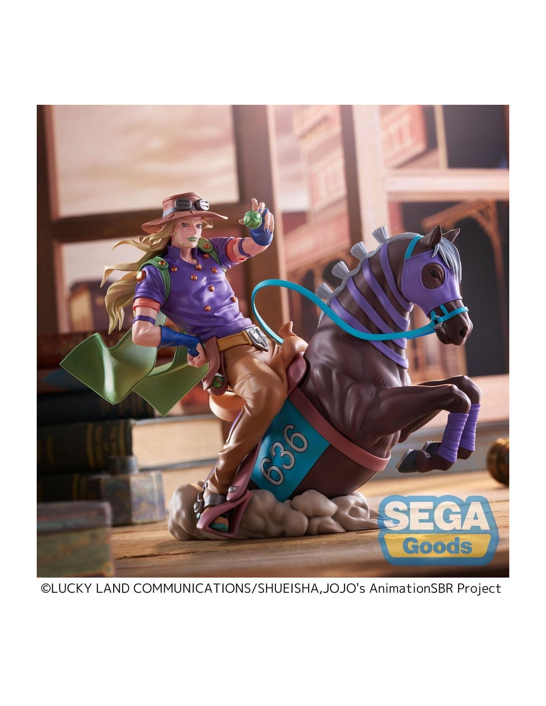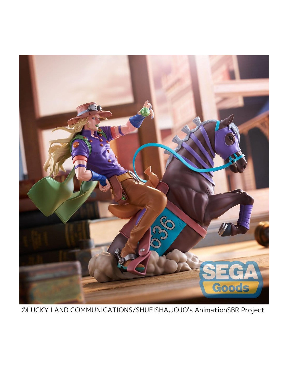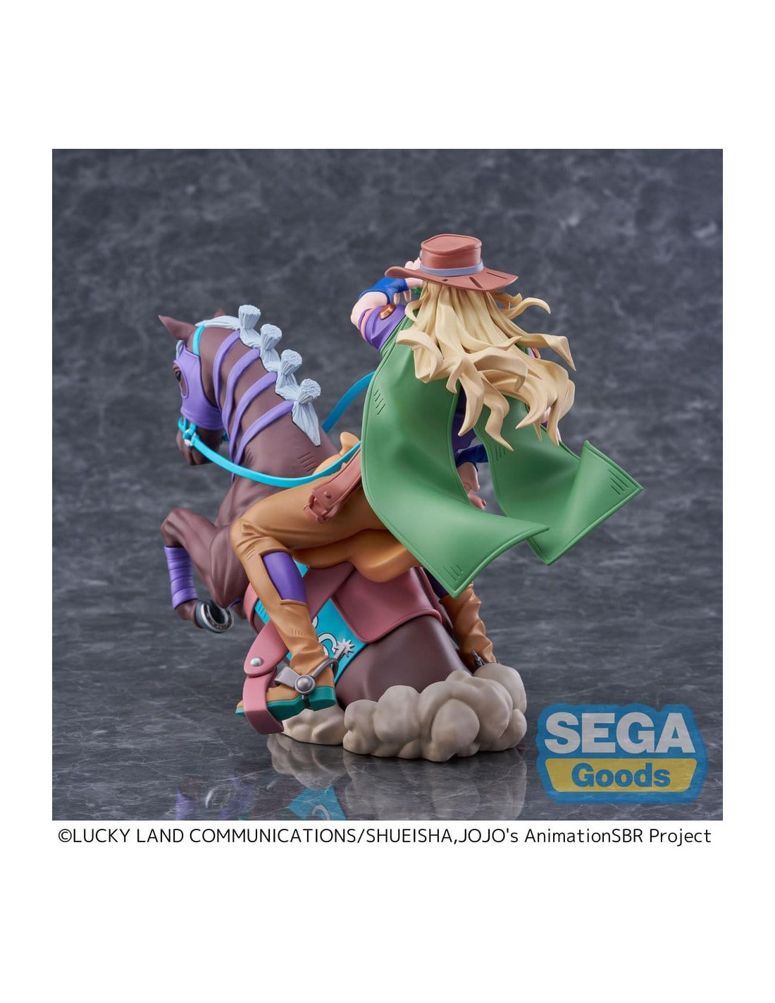 De la série animée 'JoJo's Bizarre Adventure' vient cette figurine en PVC de SEGA. Elle mesure environ 18 cm de haut et est livrée dans une boîte imprimée.