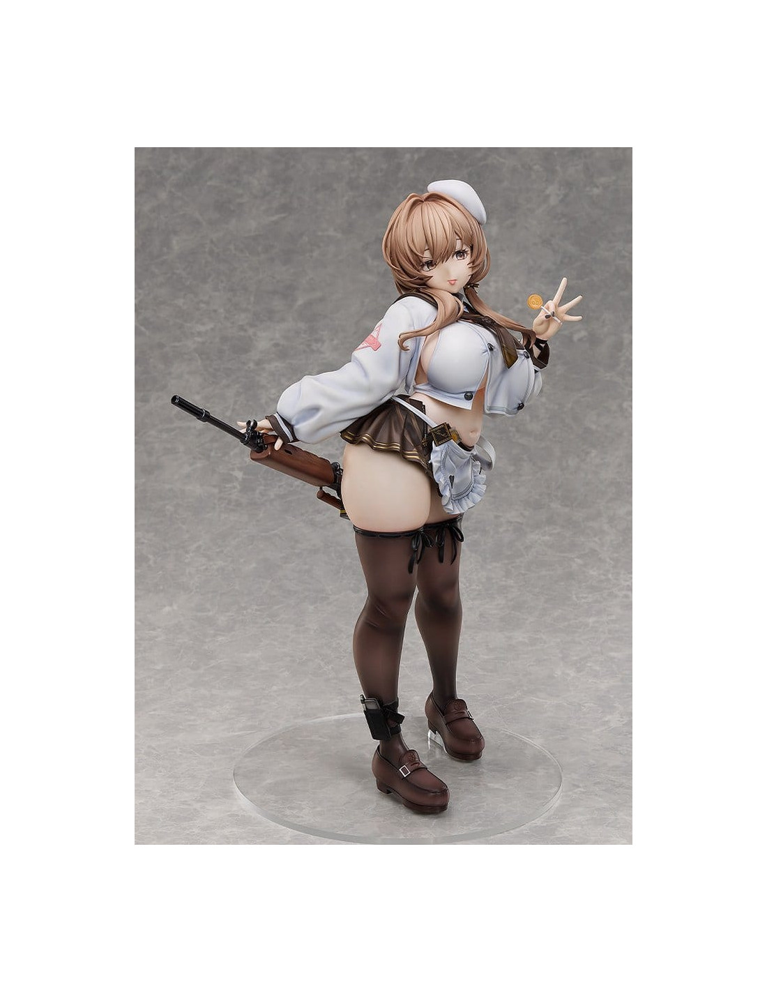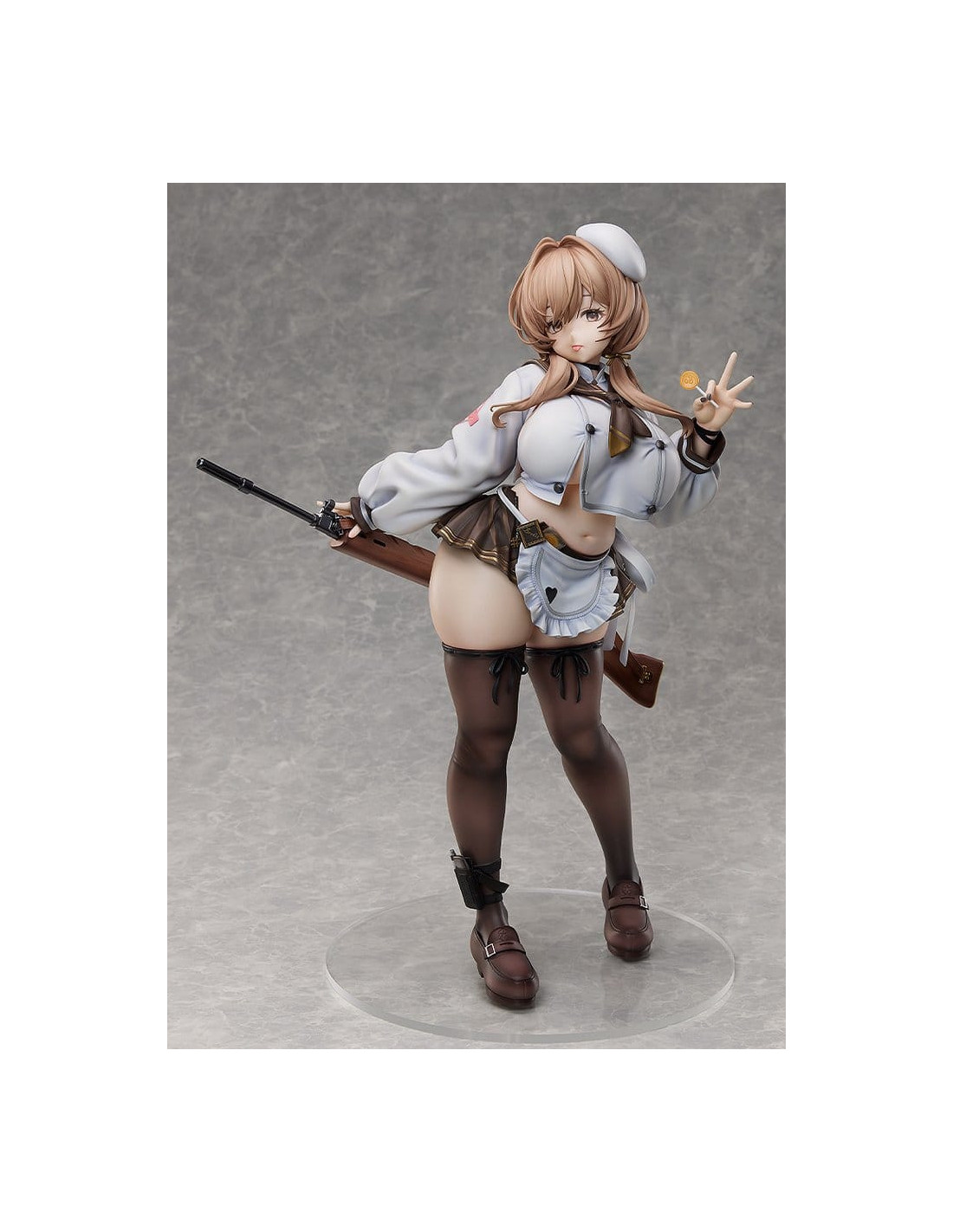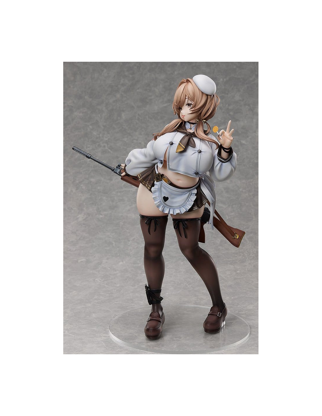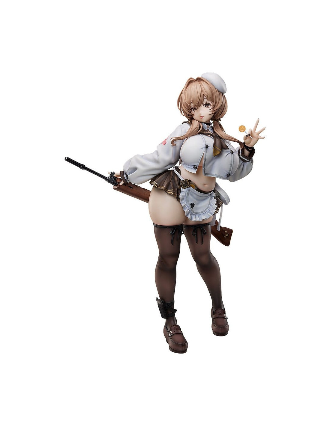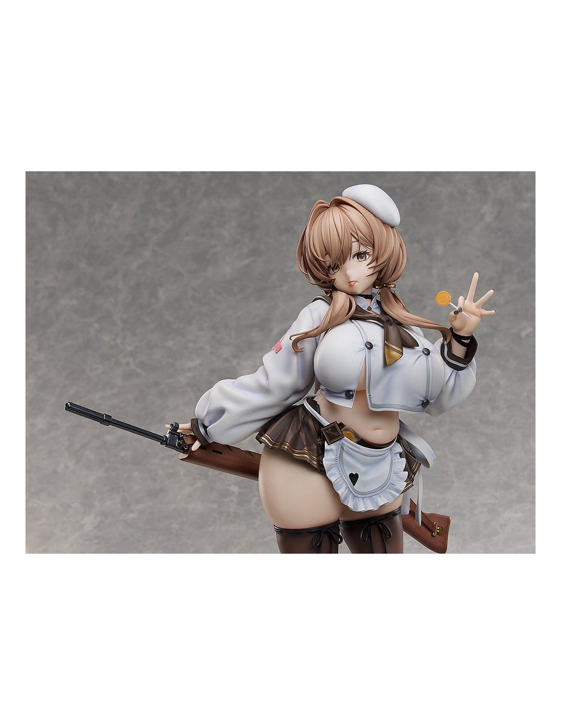 De "GODDESS OF VICTORY: NIKKE" vient une figurine à l'échelle 1/4 du membre de l'unité Tetra Line Cooking Oil, Bready ! Ses proportions attrayantes ont été soigneusement sculptées sur la base de son design de personnage et de son illustration officielle. S'inclinant doucement à la taille tout en tenant une sucette de manière enjouée, sa pose taquine capture fidèlement son charme sous forme de figurine. Une attention particulière a également été portée à l'apparence visuelle des textures, y compris les vêtements qui épousent son physique tout en courbes et la transparence de ses bas. Son fusil, le Chewing Taste, a également été méticuleusement conçu, vous transportant davantage dans le monde de "GODDESS OF VICTORY: NIKKE". Assurez-vous d'ajouter cette figurine impressionnante, grande et détaillée de la charmante Bready à votre collection !