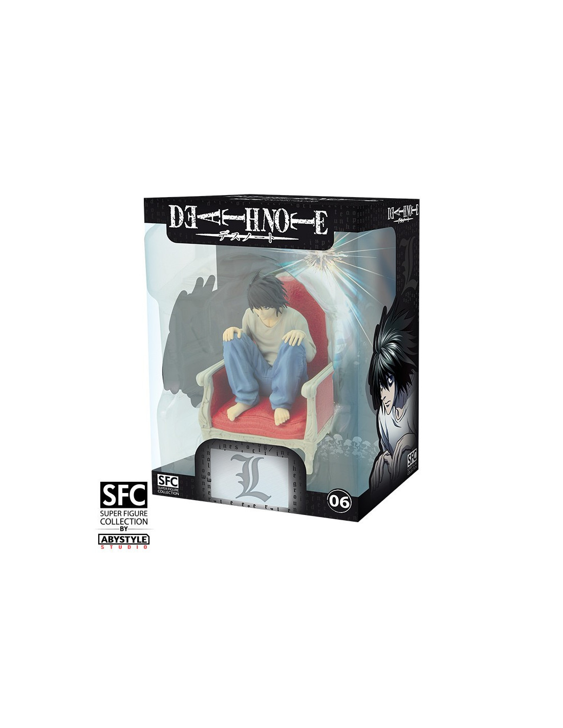 L, ou le détective le plus talentueux du manga Death Note, vient rejoindre la gamme de figurines SFC. S'acharnant à vouloir résoudre l'affaire Kira, il mettra toute son intelligence en oeuvre pour incarcérer l'assassin.
