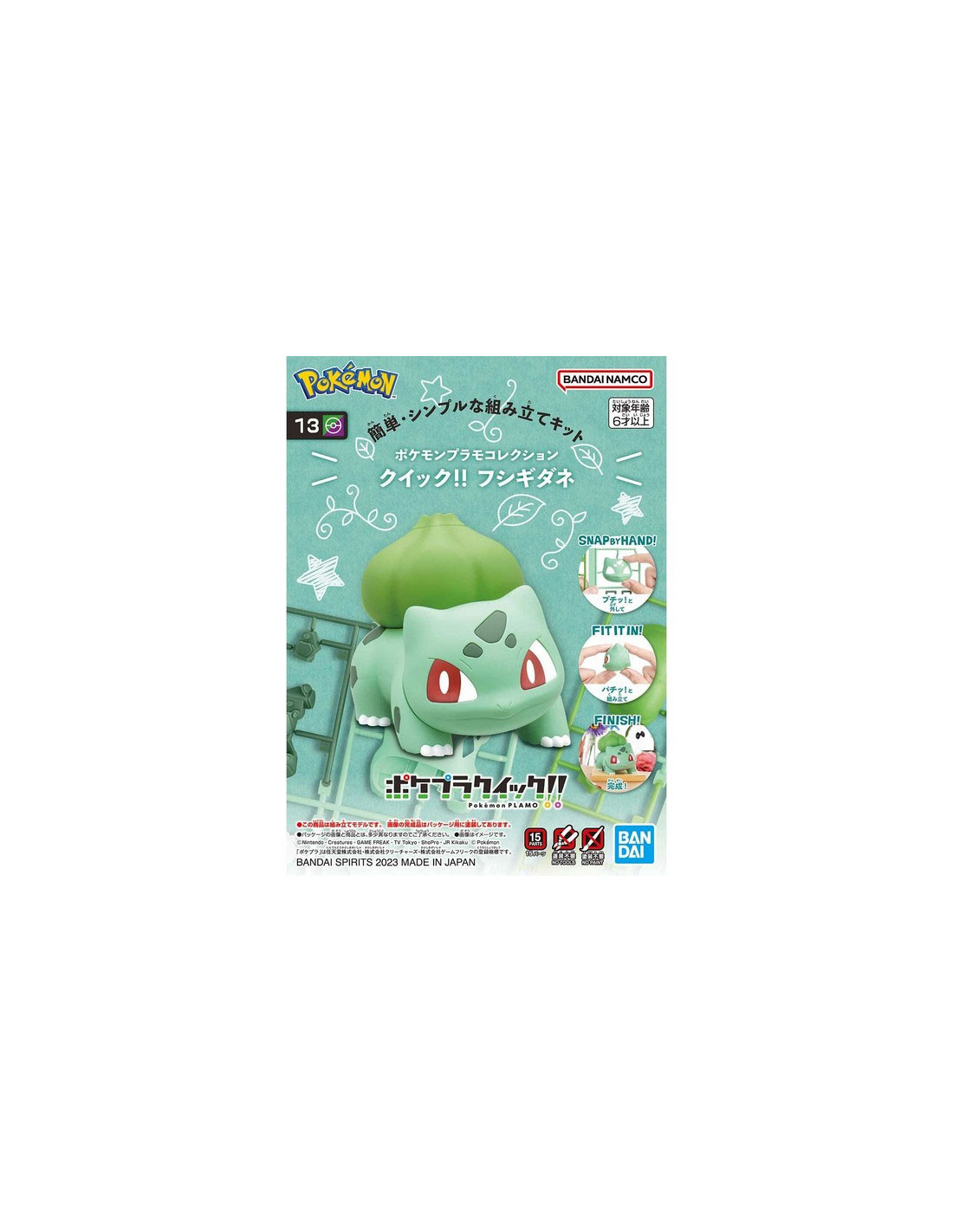 Maquette Pokemon : Bulbizarre à monter sans colle, ni peinture, produit présenté en boîte cartonnée.