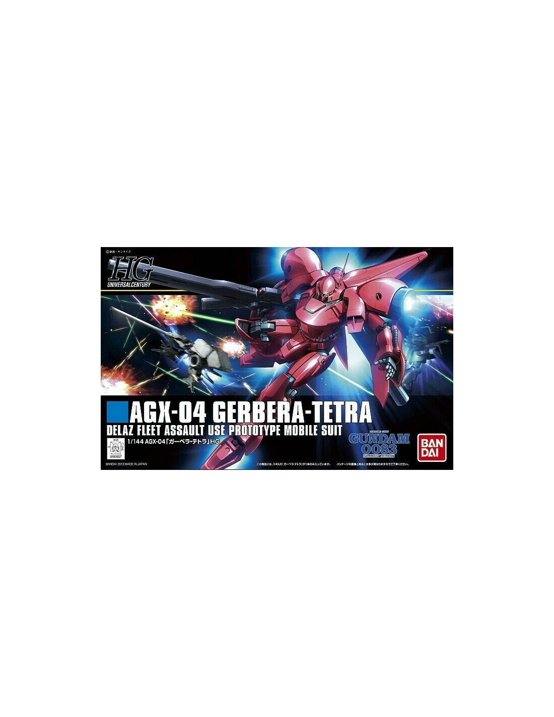 Le Gerbera-Tetra est issu de la série Mobile Suit Gundam 0083: Stardust Memory. Un Gunpla est une Figurine Gundam articulée à assembler. Son système de montage SNAPFIT ne nécessite ni colle, ni peinture. Elle mesure environ 13 cm et est présentée en boite cartonnée.