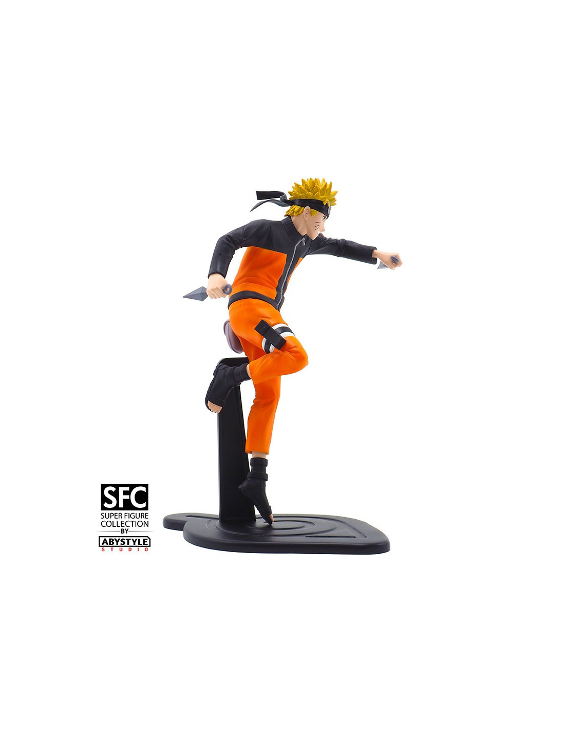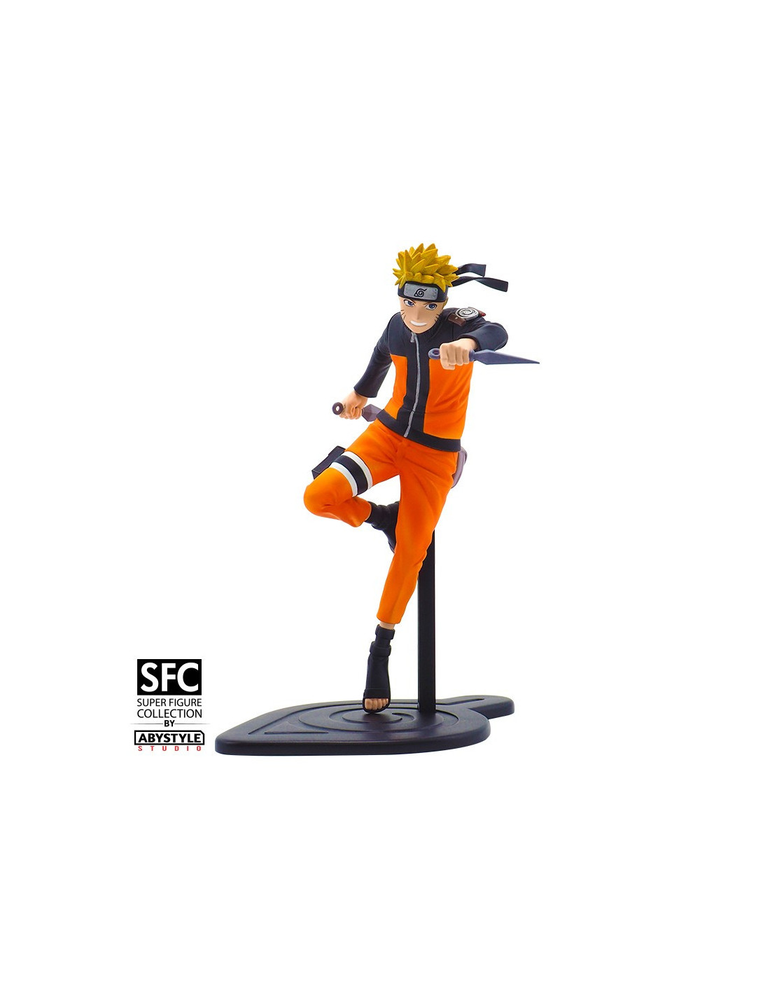 Naruto Uzumaki, le jeune héros tout droit venu de Konoha, vient rejoindre la gamme SFC ! Accompagné de ses deux kunais, vous trouverez le plus emblématique personnage du manga dans une position dynamique sur son socle personnalisé. - Figurine en PVC - Socle travaillé avec l'emblème de Konoha - Packaging à la licence - Produit 100 % officiel - Dimensions : Hauteur 17 cm - Echelle : 1/10ème