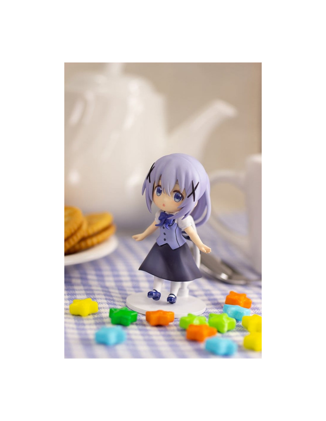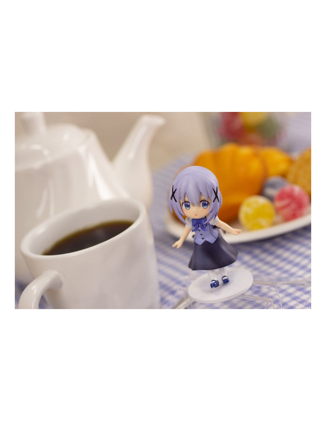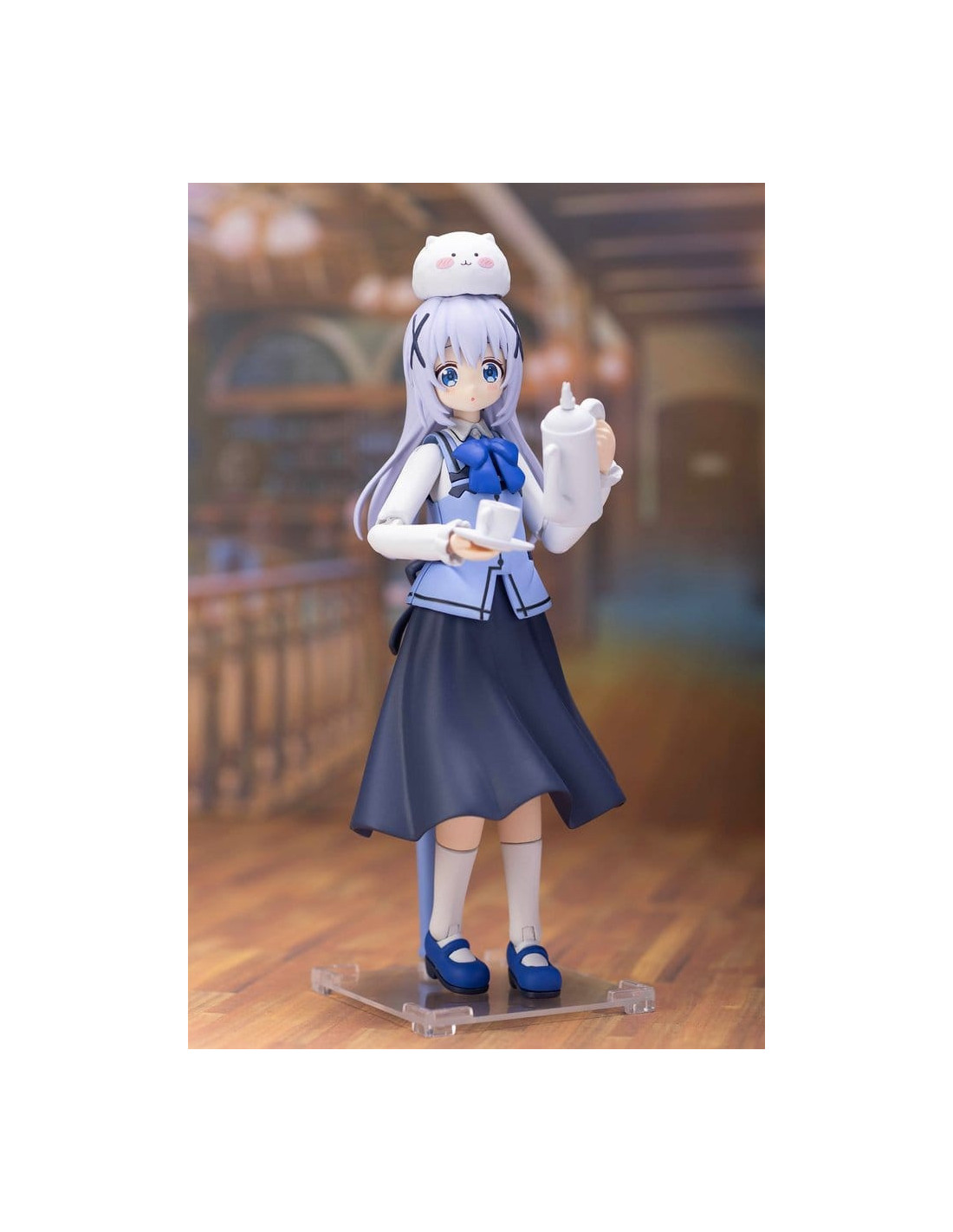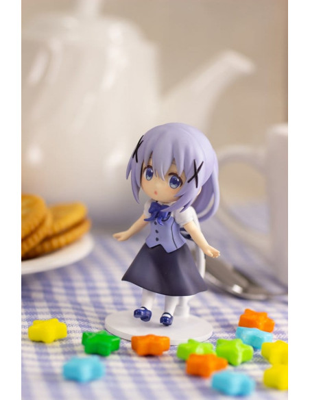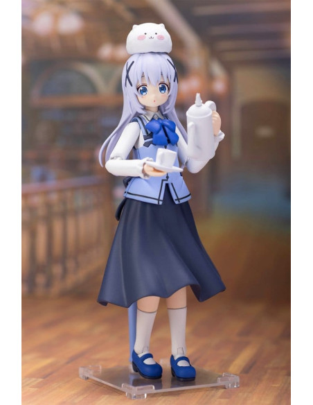 Ceci est un kit de modèle en plastique Plafia de Chino de 'Is the Order a Rabbit? BLOOM', qui inclut un ensemble de figurines mini. Fabriqué par PLUM PMOA, ce kit sans échelle mesure environ 14 cm de haut une fois assemblé.